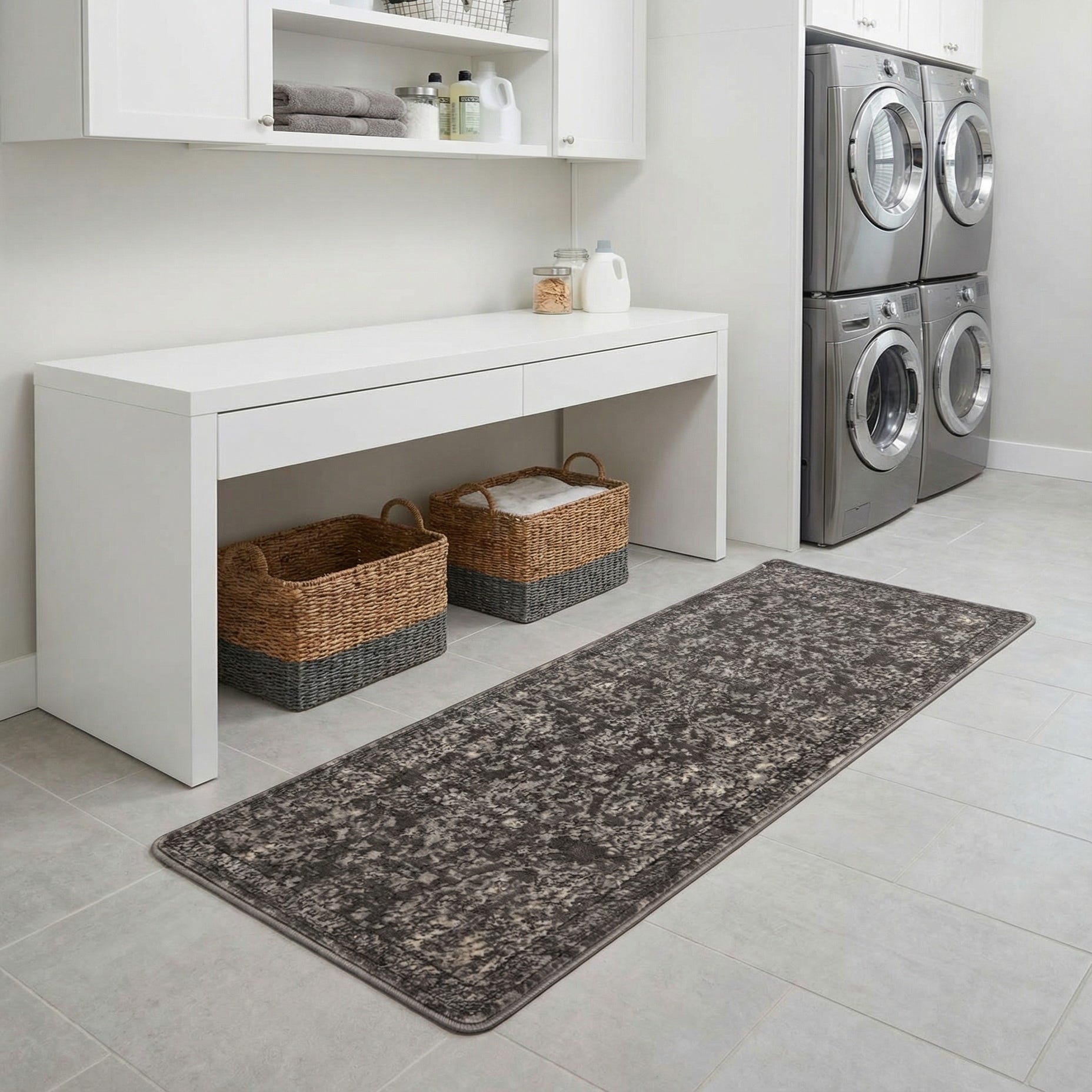 Primary color is Gray. Colors in this rug include: Gray, Beige, Ivory.