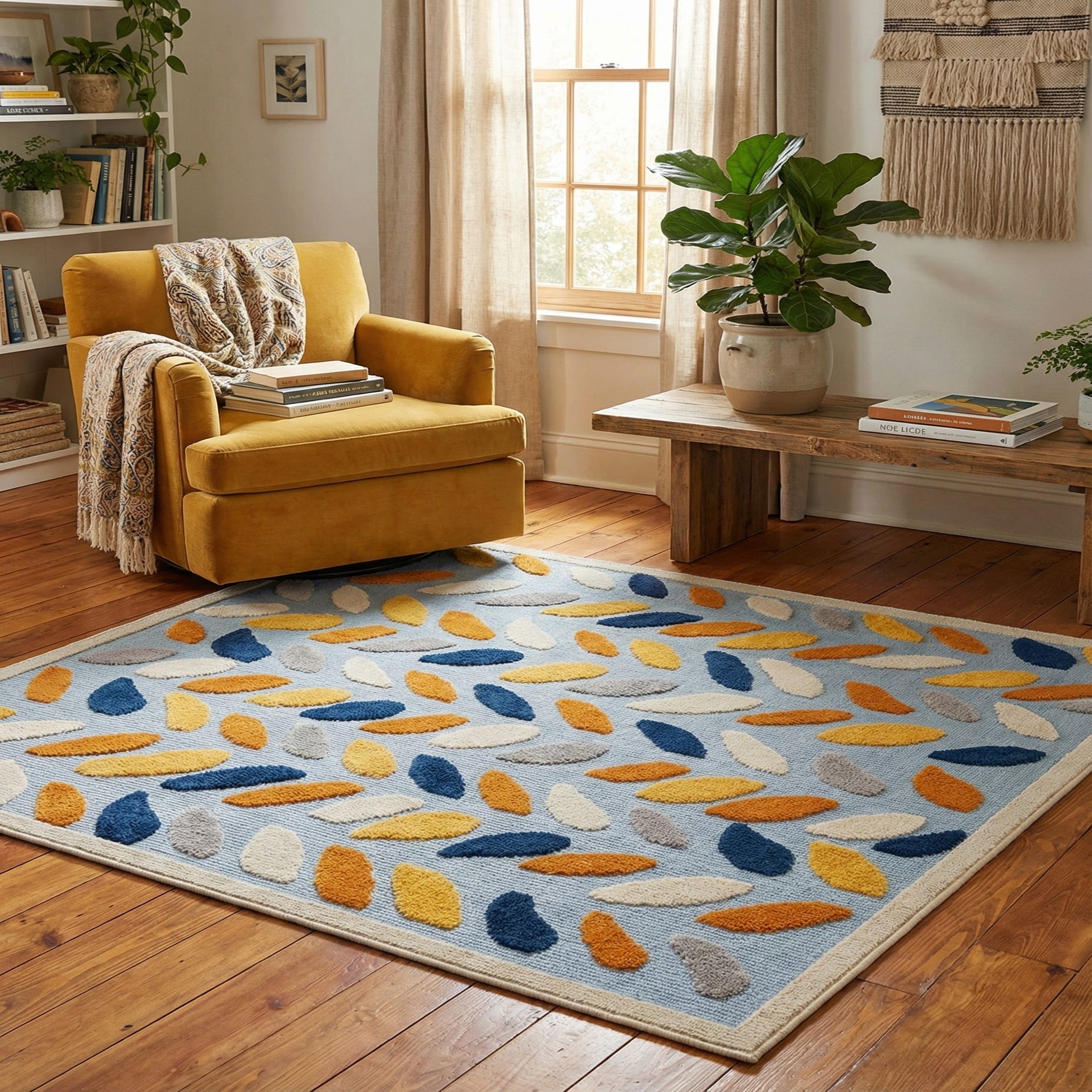 The color combination and modern motif of this rug make it an excellent candidate for a wide range of outdoor styles, from minimalistic patios to more eclectic or coastal-themed deck areas. Its stain-resistant properties and pet-friendly material make it practical for high-traffic and open-air environments. Additionally, the rug's shed-free construction ensures that it maintains a clean appearance with minimal maintenance.