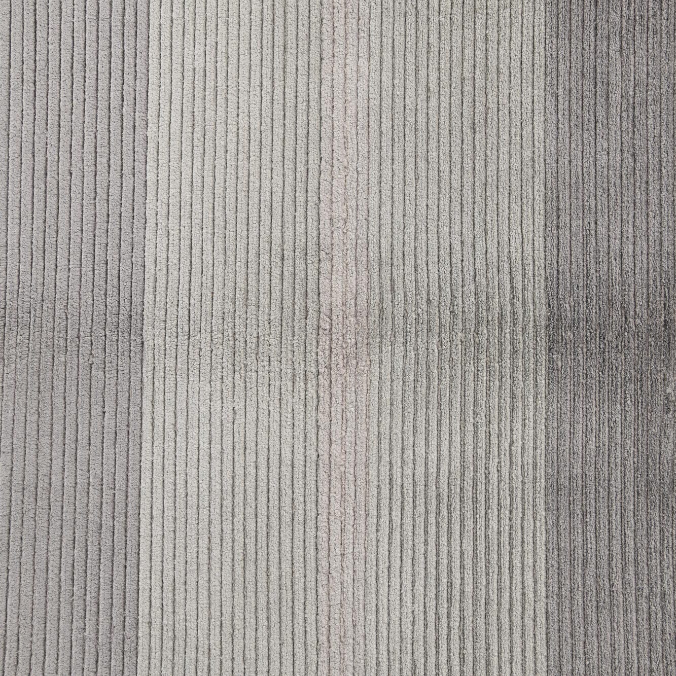 The restrained palette and linear pattern work well in modern, minimalist, or transitional interiors. Use it to anchor a seating area under a coffee table, add quiet texture to a home office, or layer it in a bedroom for added depth without overwhelming the space. It pairs naturally with cool-toned woods, black metal accents, and silver finishes, and the ribbed texture complements smooth leather or linen upholstery.