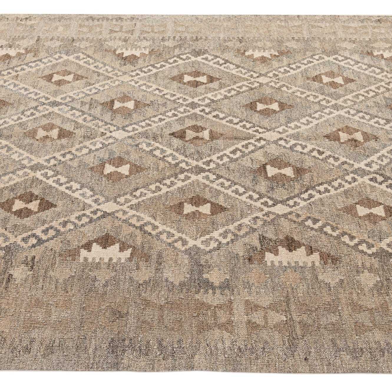 5' 2 x 6' 11 Hand Woven Kilim Maymana Wool Rug