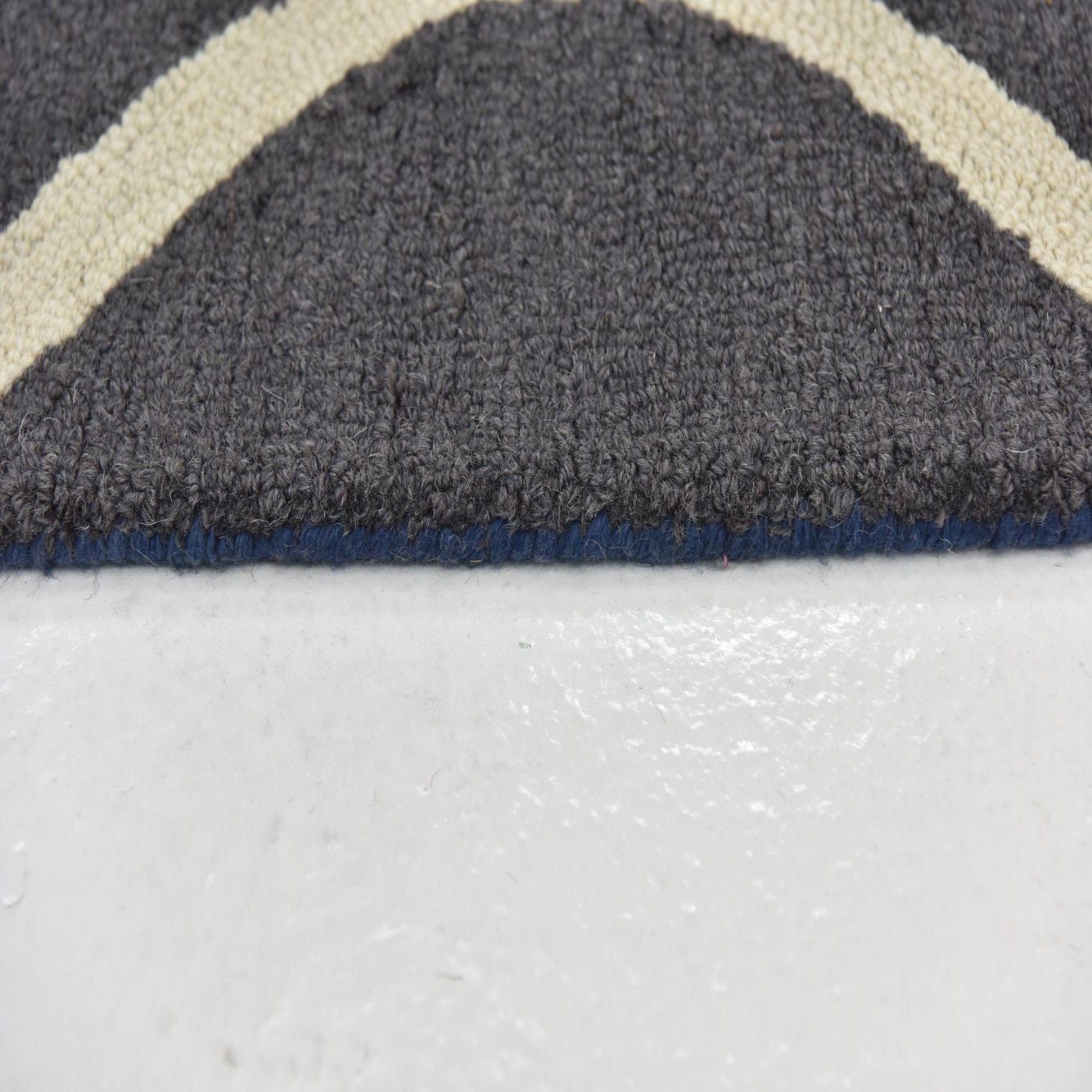 The Luna collection presents a gracefully hand-tufted 5x7 rug, crafted from 100% wool. This durable piece showcases a classic gray background, accented with a dynamic ivory lattice pattern, offering both visual interest and timeless elegance. The interplay of the contrasting colors creates a striking effect, while the woolen texture ensures a soft, plush feel underfoot.