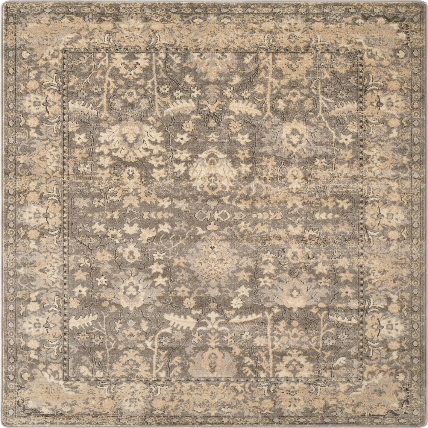 Primary color is Gray. Colors in this rug include: Gray, Beige, Ivory.