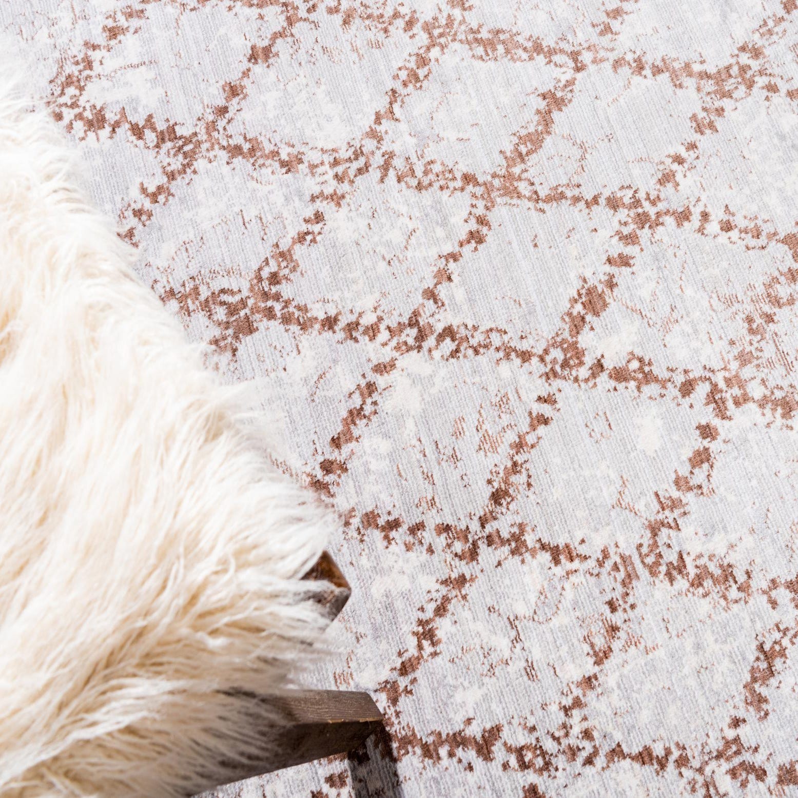 Primary color is Gray. Colors in this rug include: Gray, Brown, Ivory.
