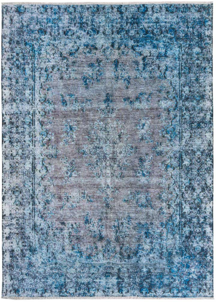 Primary color is Gray. Colors in this rug include: Gray, Blue, Navy Blue, Ivory.