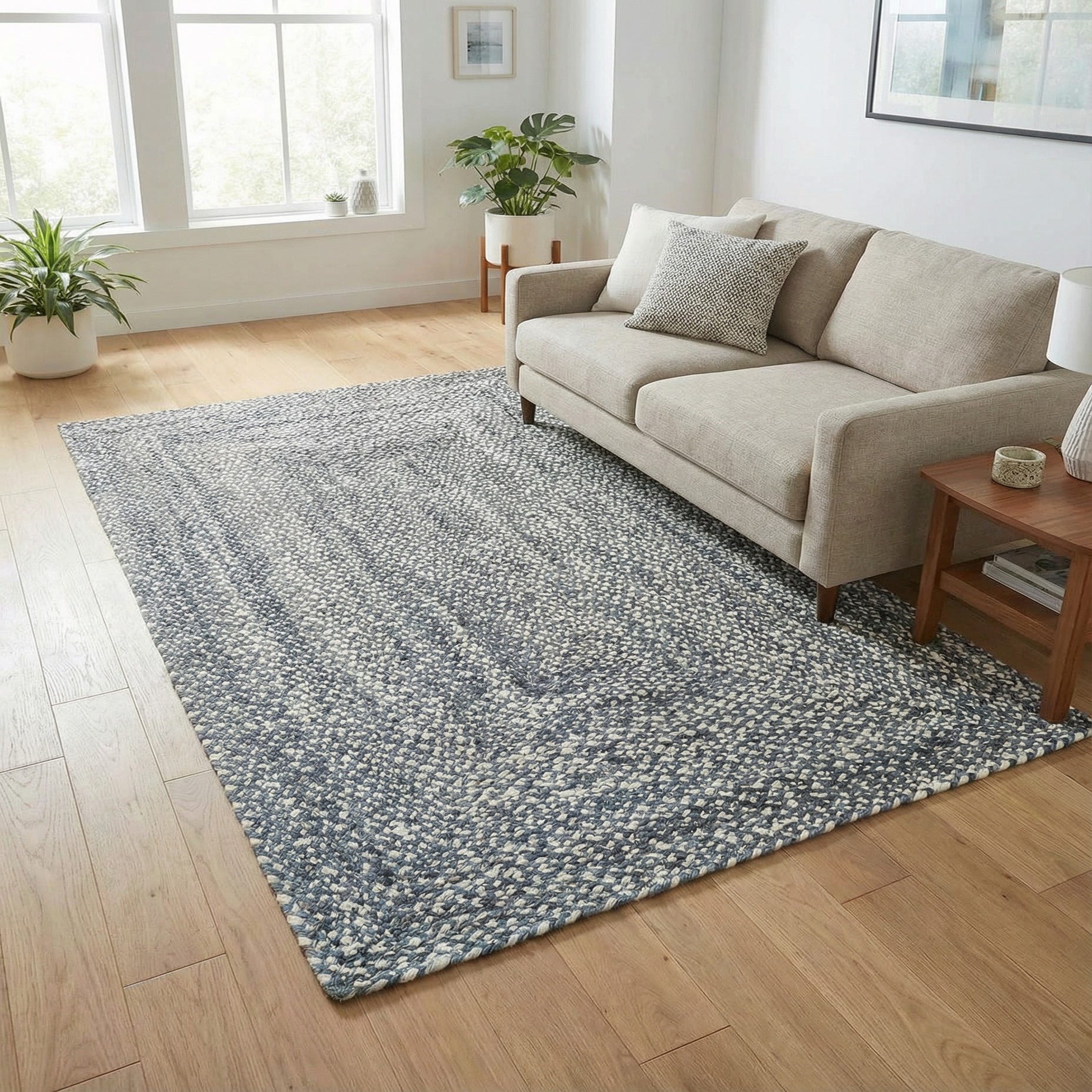 This versatile rug works well in relaxed, lived-in spaces: place it under a coffee table to anchor a casual living room, in an entry to introduce a neutral palette, or layered beneath a dining table for added texture. It pairs naturally with light woods and white-painted furniture for a coastal or farmhouse aesthetic, and also complements modern or transitional rooms with charcoal leather seating or cool metal accents.