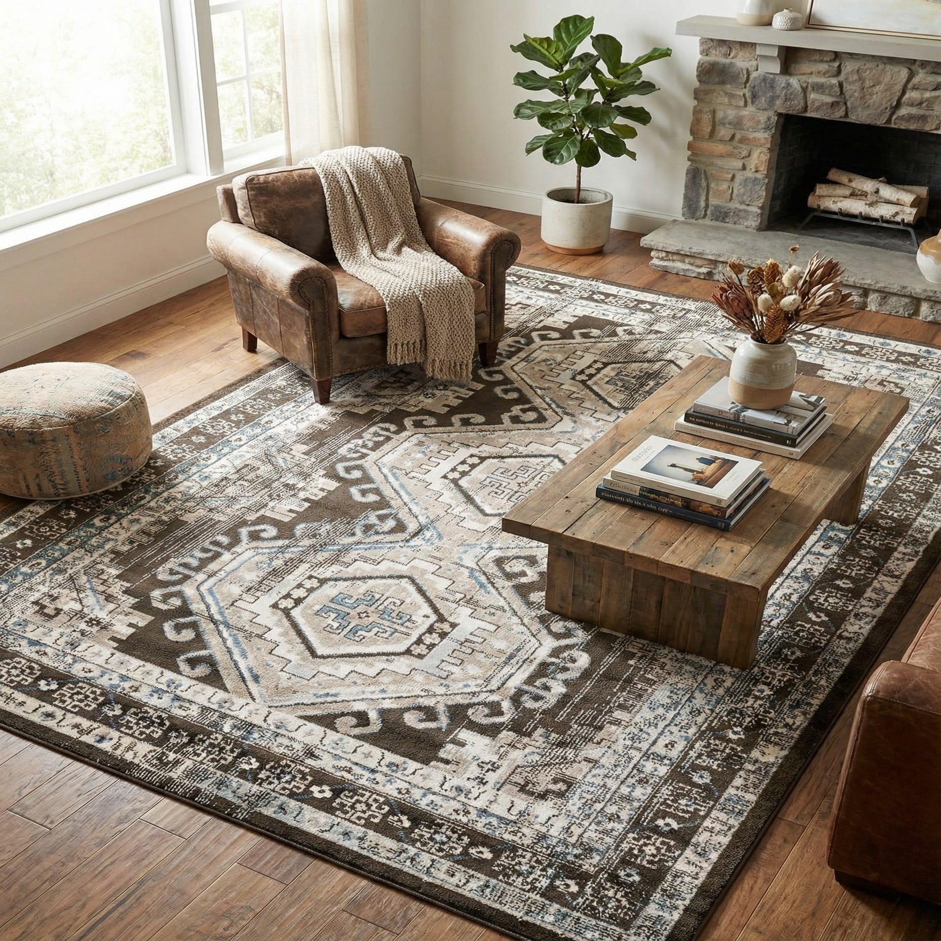Made of 100% polypropylene, the rug has a low, dense pile that feels smooth underfoot and holds its shape when anchored by furniture. Its flat profile works well beneath a sectional and coffee table or layered in a bedroom beneath a bed and nightstands. Pair it with cool-toned upholstery and weathered wood finishes for a relaxed coastal or transitional look, or use it to soften a modern industrial space with metal and leather accents. Light blue accessories or ivory textiles will pull the color story together.