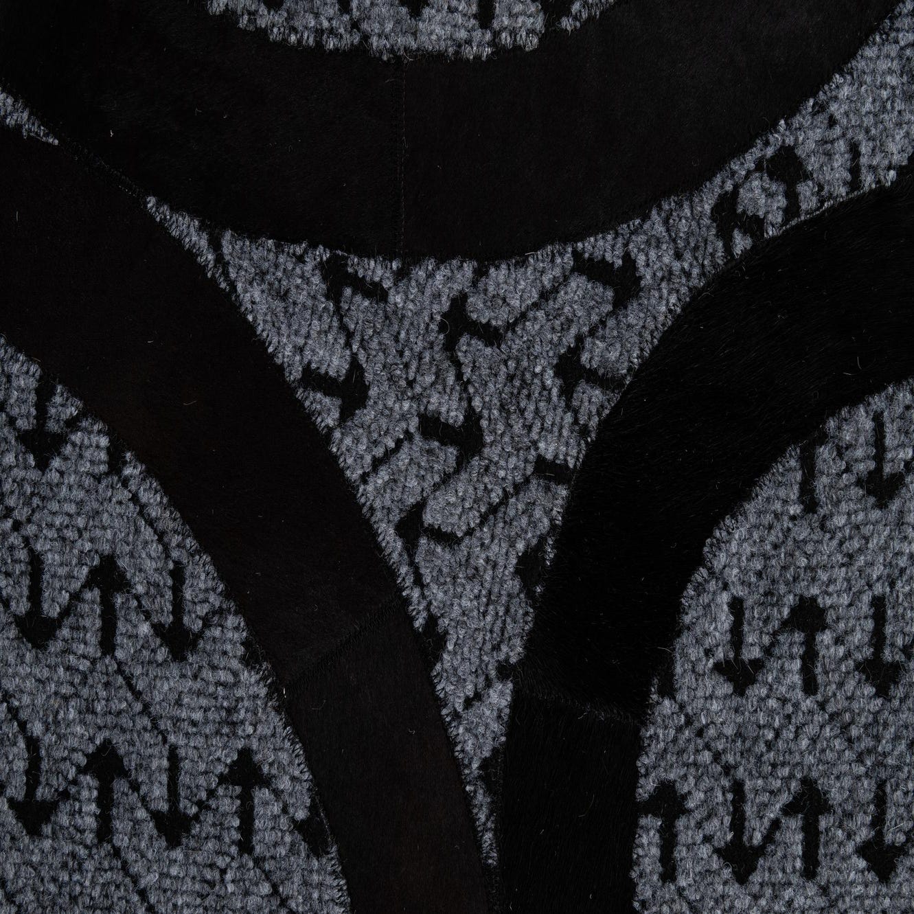 The graphic palette of gray and black works well in contemporary, industrial, or minimalist interiors. Use it to anchor a seating area beneath a coffee table, add a layered point of interest in a home office, or introduce strong geometry in a monochrome bedroom. Pair with streamlined furniture, metal or glass accents, and leather upholstery for a cohesive, modern look.