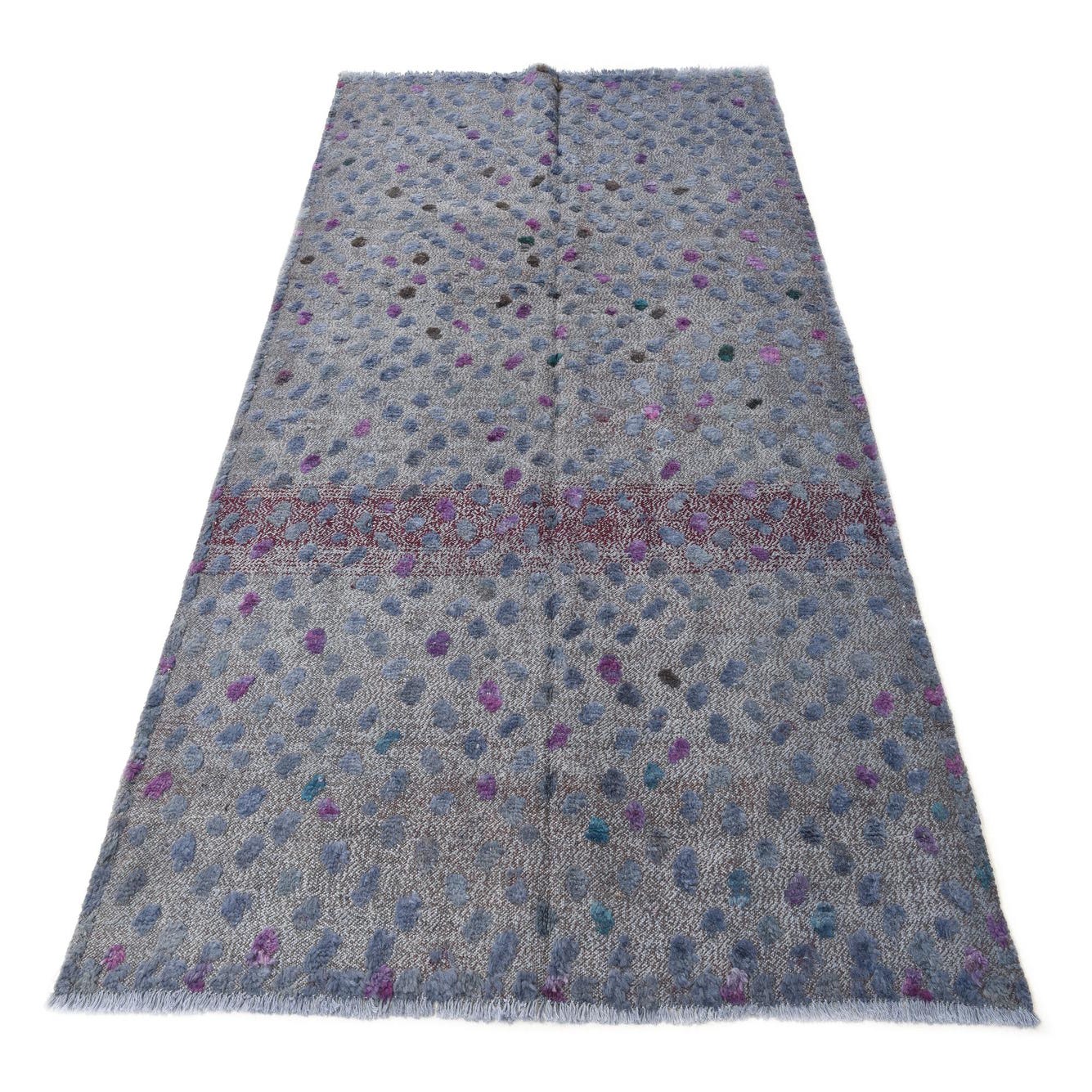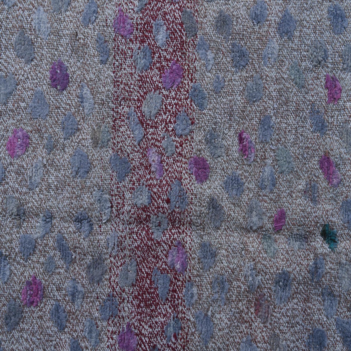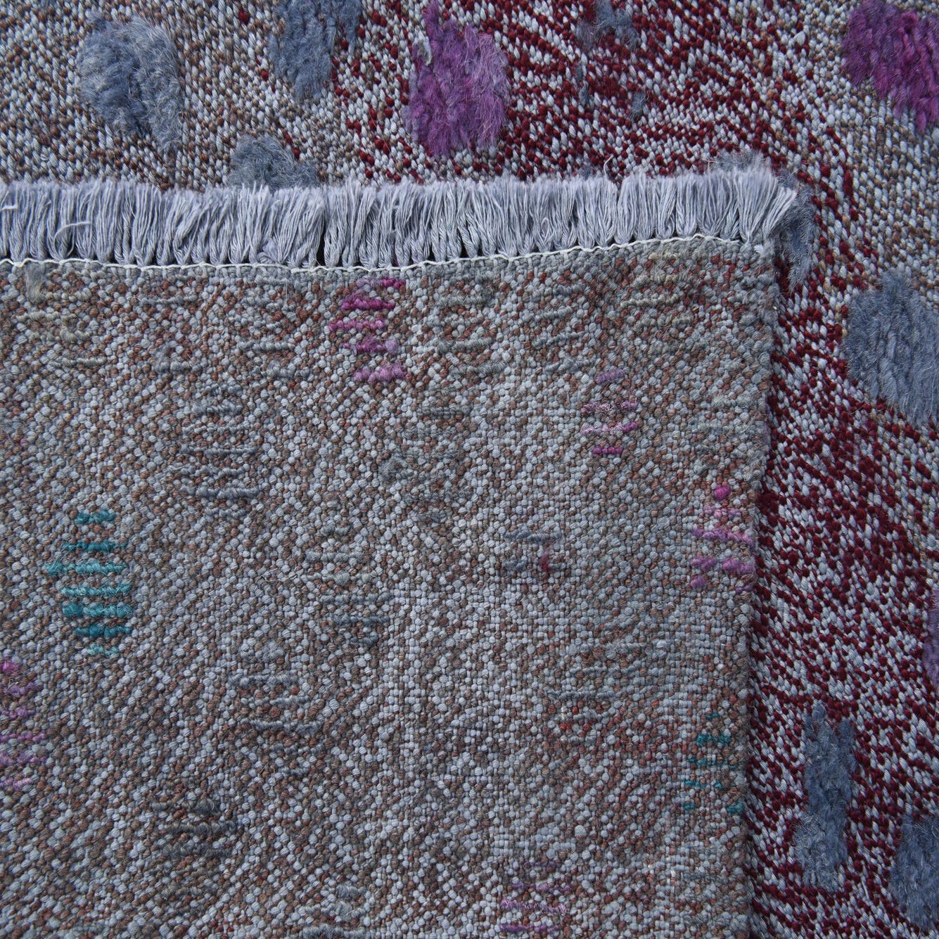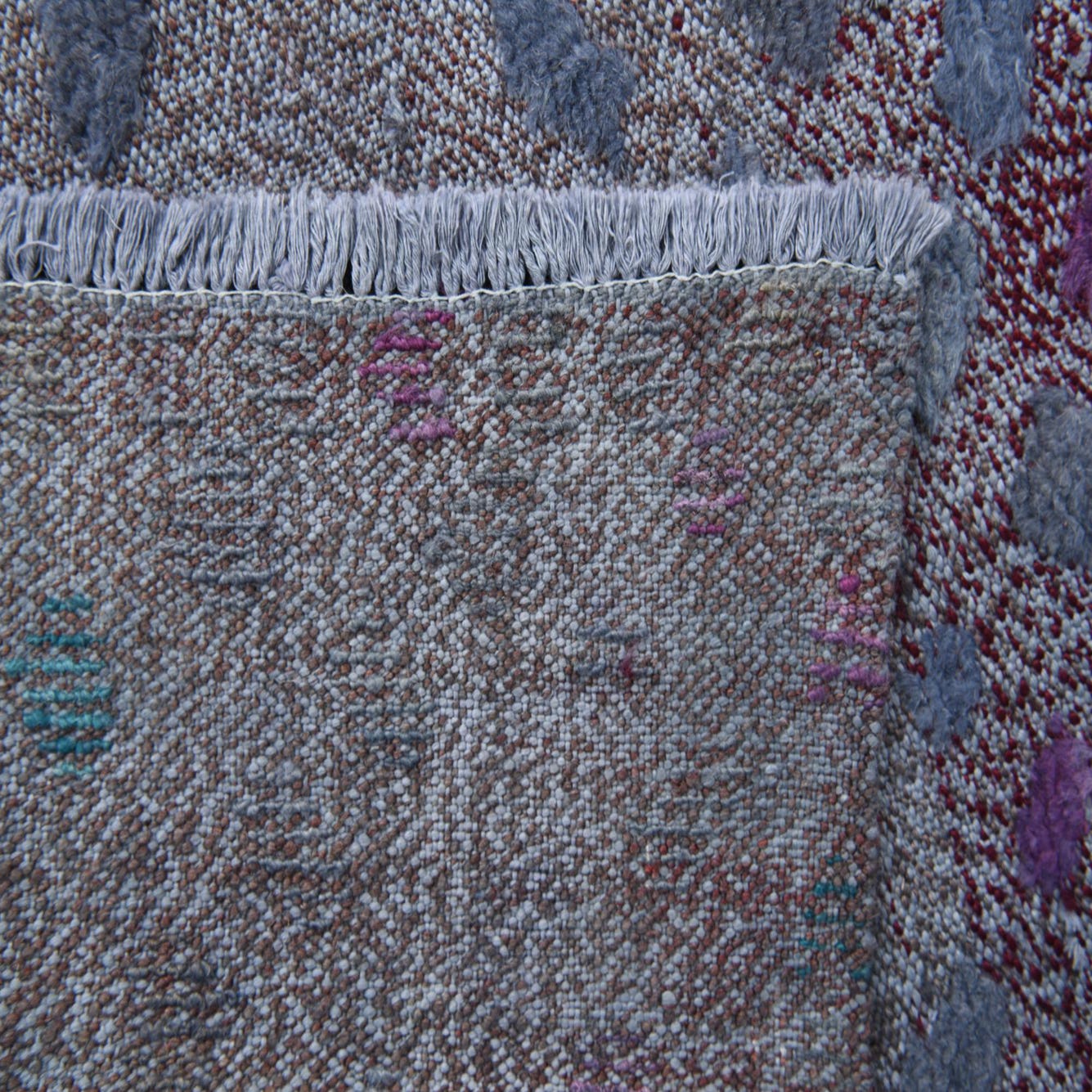 Primary color is Gray. Colors in this rug include: Gray, Purple, Burgundy.