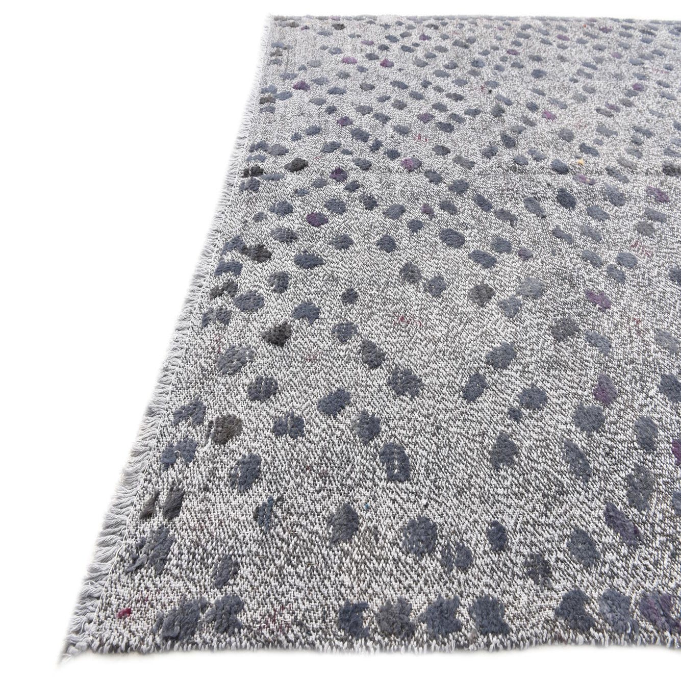 A 5x8 rectangular Darya rug in shades of gray and silver with an abstract, modern pattern of dark flecks, suitable for a living room.