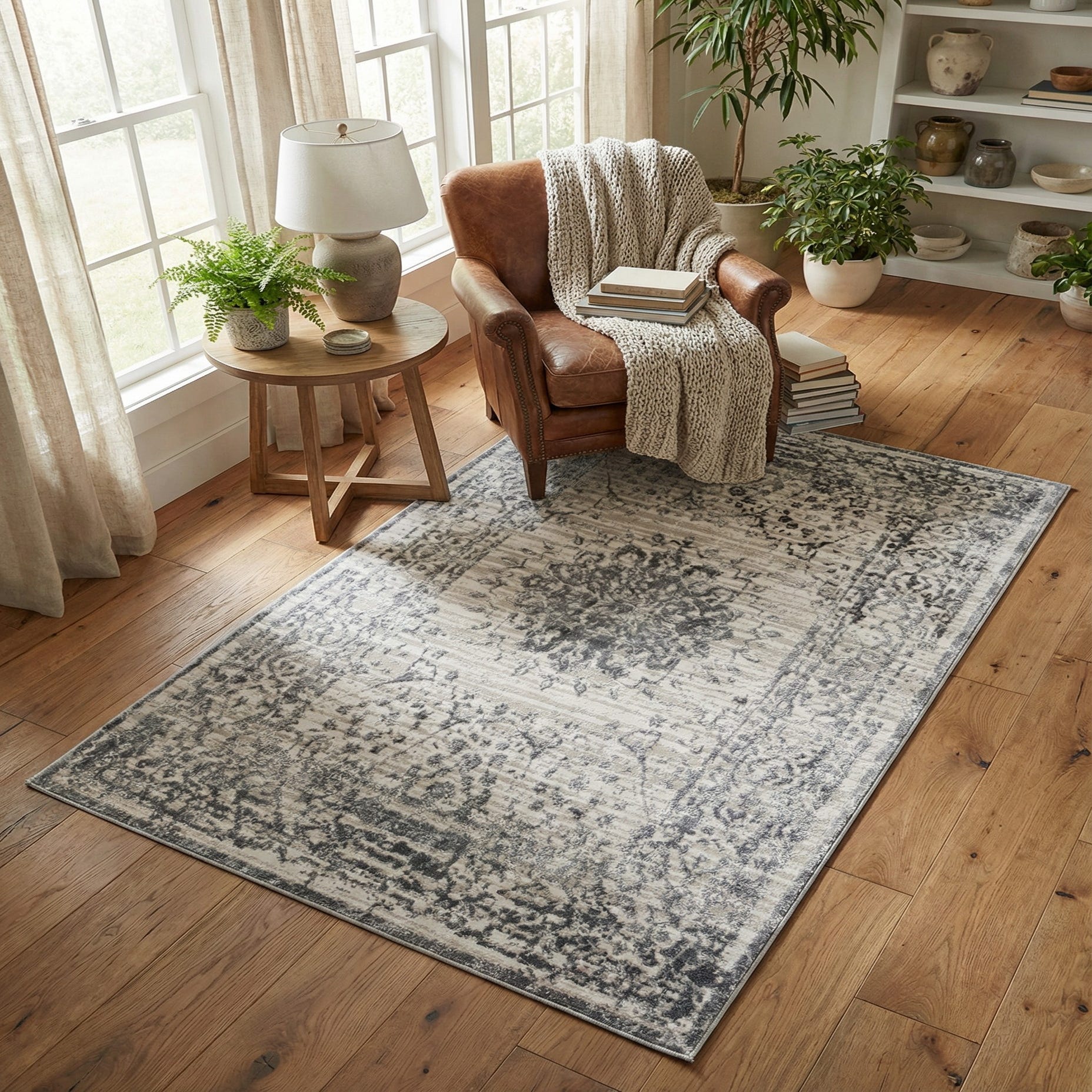 This rug pairs easily with a range of interiors — use it to anchor a living room seating area, layer it beneath a bed to soften the space, or place it in a dining room for a muted, cohesive foundation. It works well in transitional and modern farmhouse settings, Scandinavian or minimalist schemes that favor clean lines and neutral tones, and contemporary urban apartments where a subdued, elegant floor covering is desired. Combine it with warm wood furniture and cool metal accents to balance the gray and beige palette.
