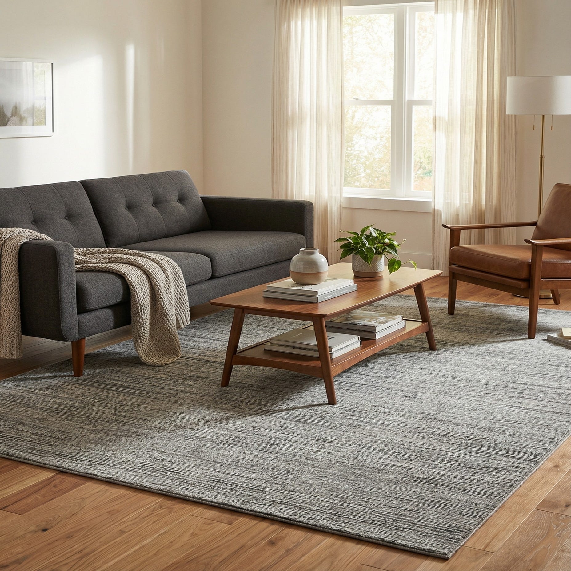 This neutral palette and understated pattern work well in contemporary, transitional, or Scandinavian-inspired interiors. Place it beneath a sofa and coffee table to ground a living area, layer it under a dining set to soften a dining room, or use it in a bedroom to add calm, tonal interest. It pairs nicely with warm wood furniture, matte metal accents, and both cool and muted color schemes for a balanced, lived-in look.