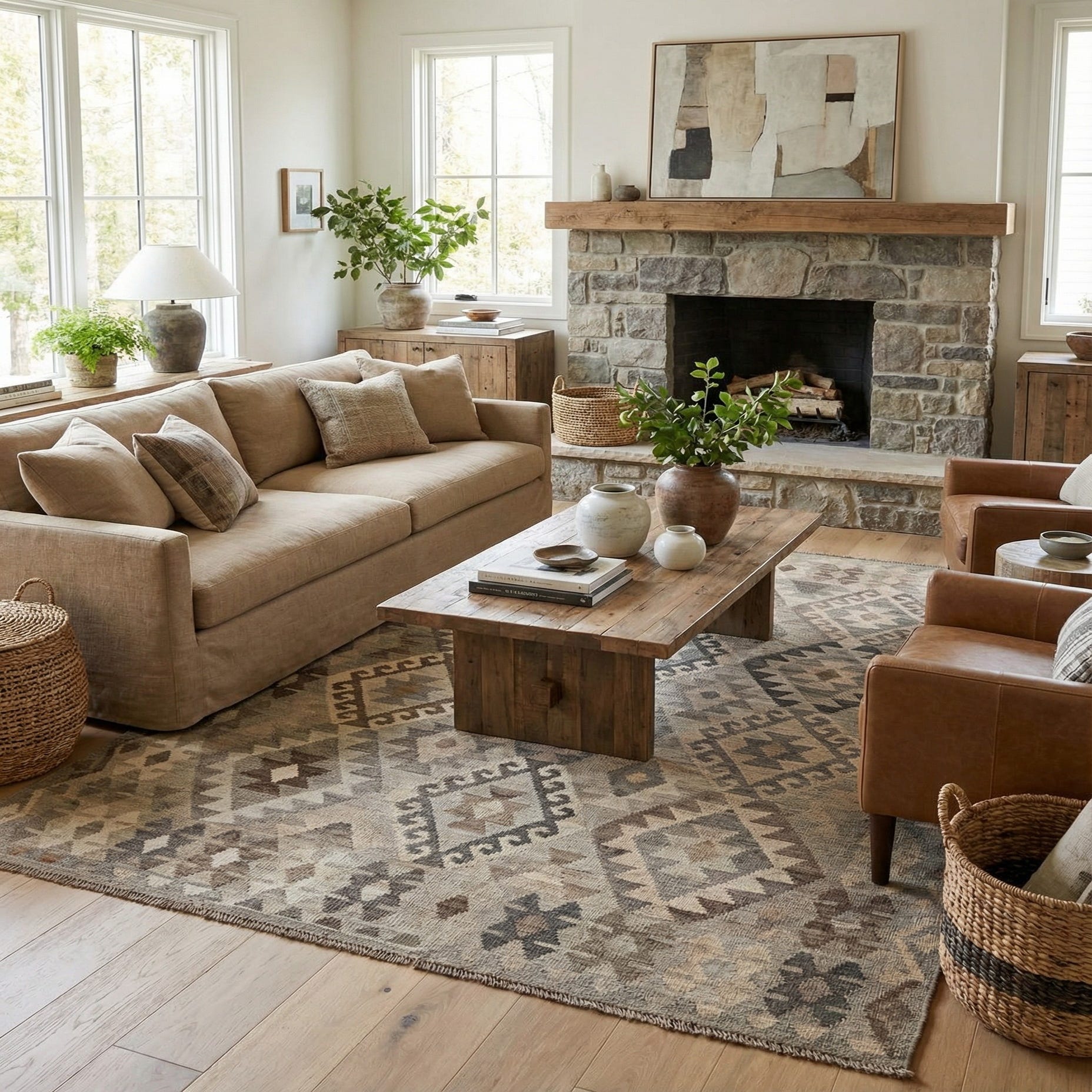 5' 8 x 7' 10 Hand Woven Kilim Maymana Wool Rug