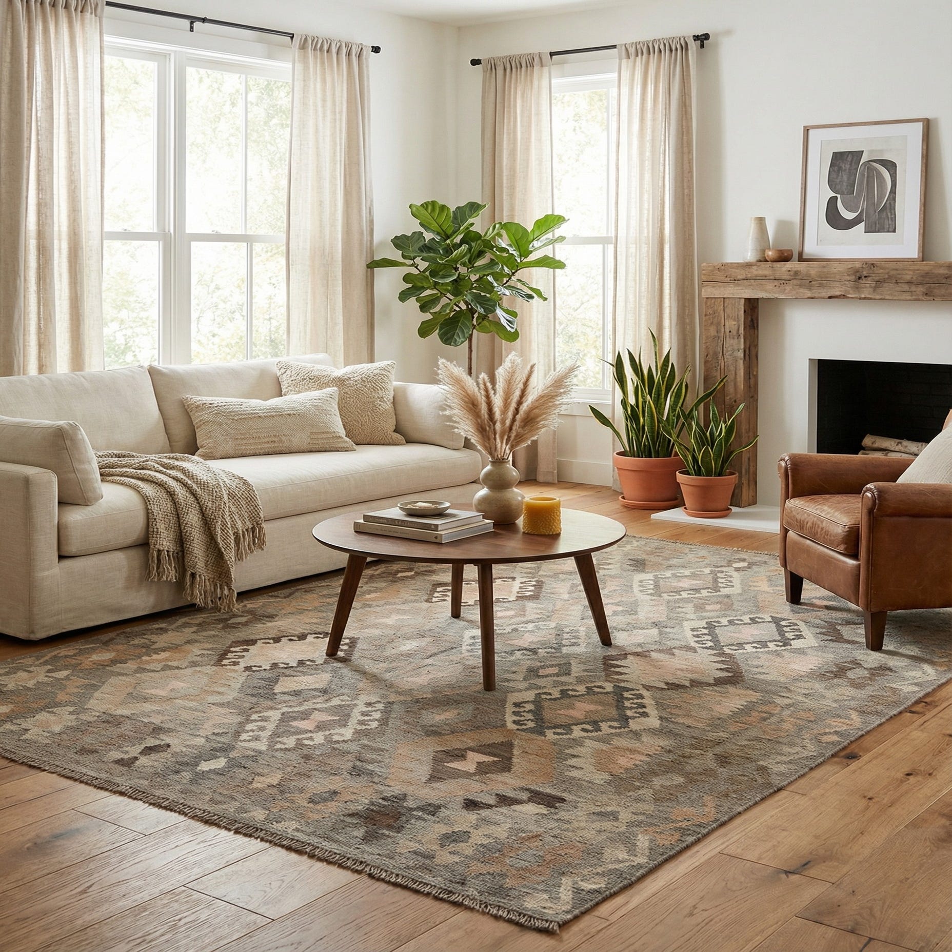 5' 9 x 7' 11 Hand Woven Kilim Maymana Wool Rug