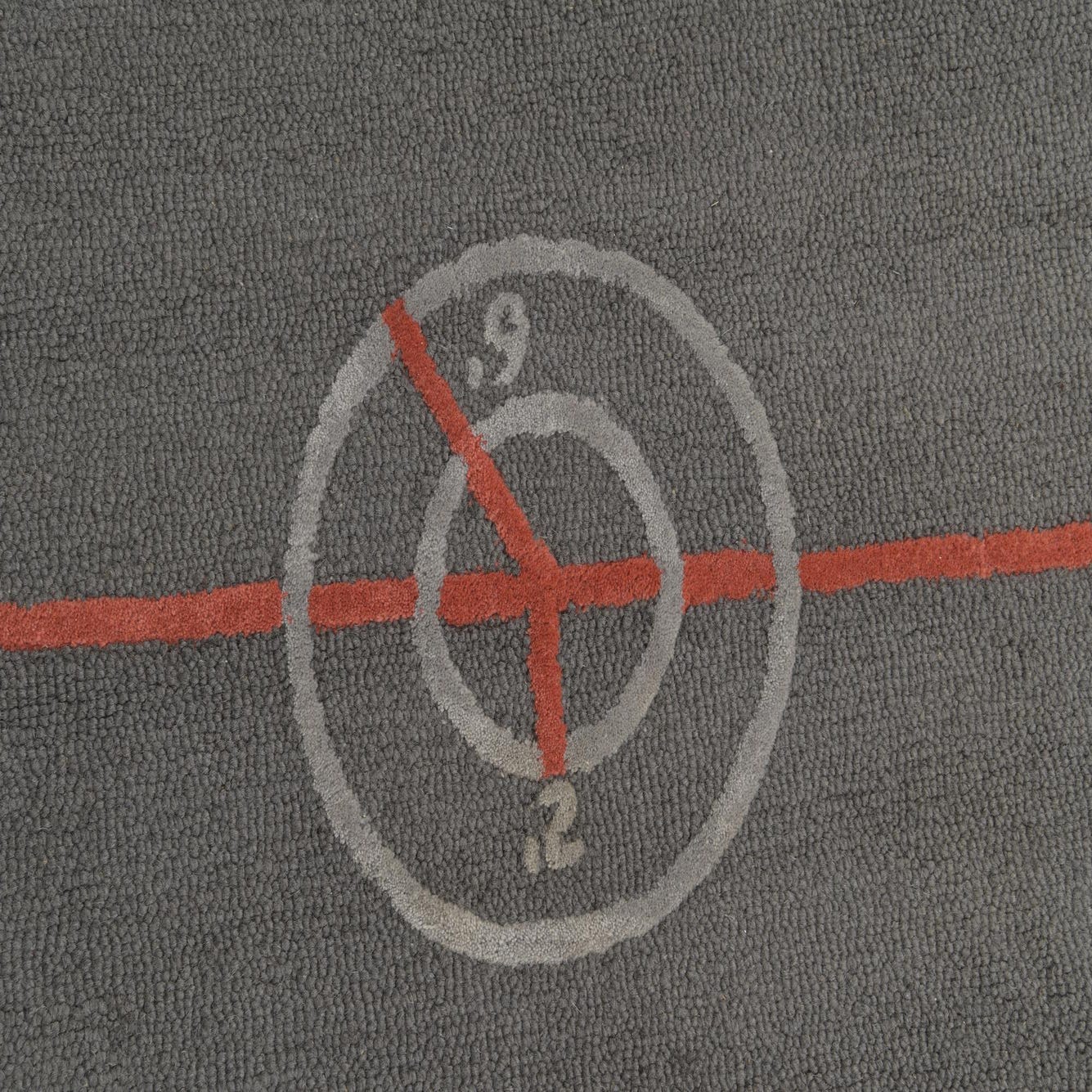 With its sleek color palette and intriguing pattern, this rug could serve as a statement piece in a minimalist decor setting or fit well within a modern office environment. The contrast of gray and rust red could complement neutral-toned furniture or stand against the aesthetics of a more eclectic room, offering a tasteful visual anchor. Its medium size is versatile for various room layouts, including living spaces, home offices, or quiet reading nooks.