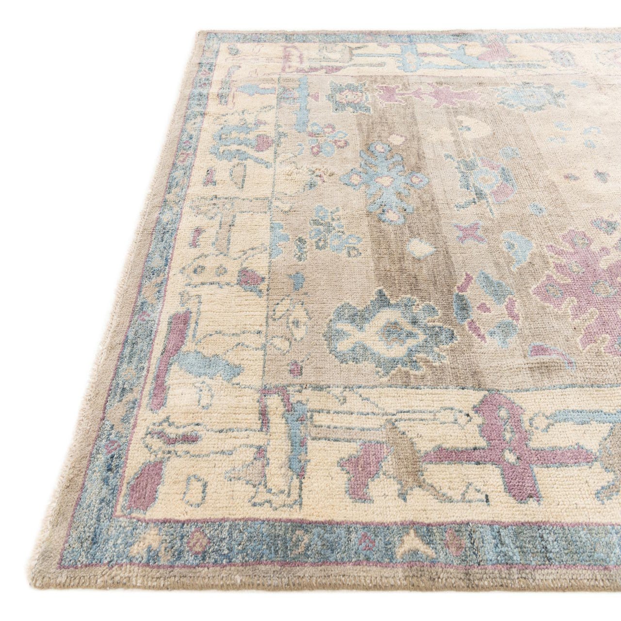 Primary color is Gray. Colors in this rug include: Gray, Ivory, Violet, Light Blue, Brown.