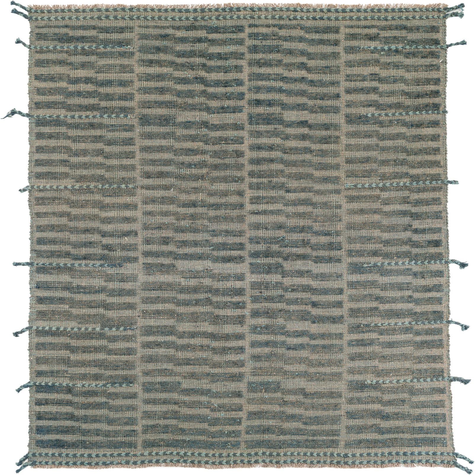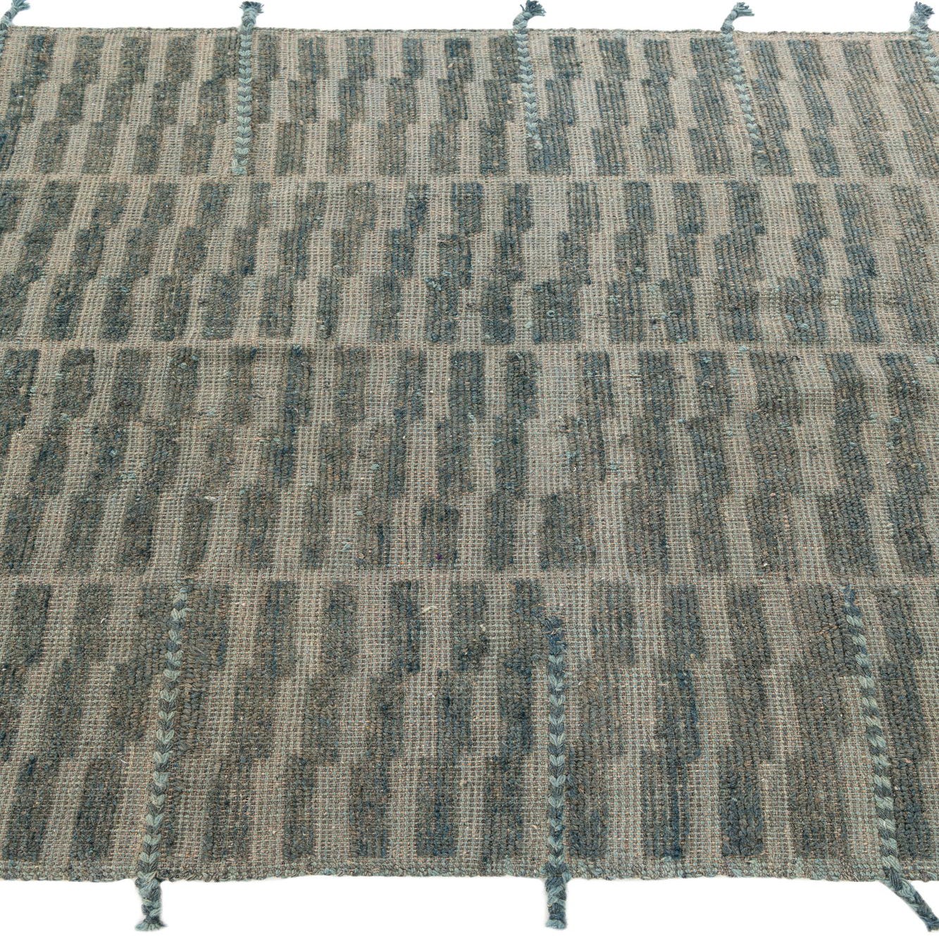 Primary color is Gray. Colors in this rug include: Gray, Blue.