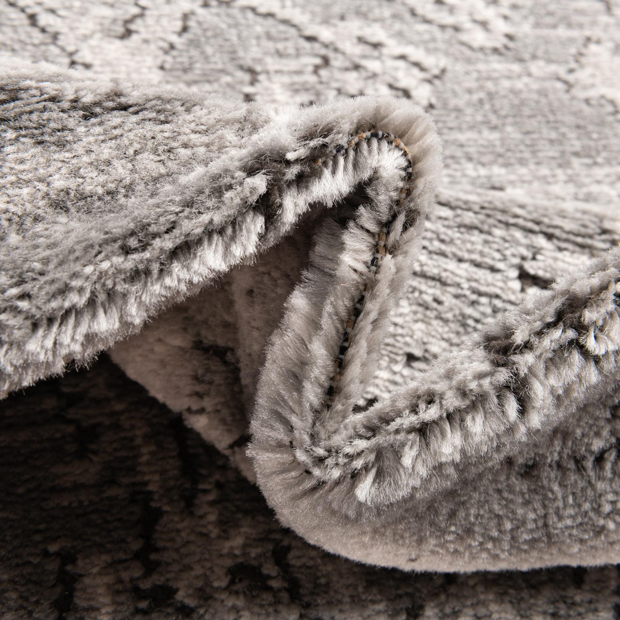 Primary color is Gray. Colors in this rug include: Gray, Black, Ivory.