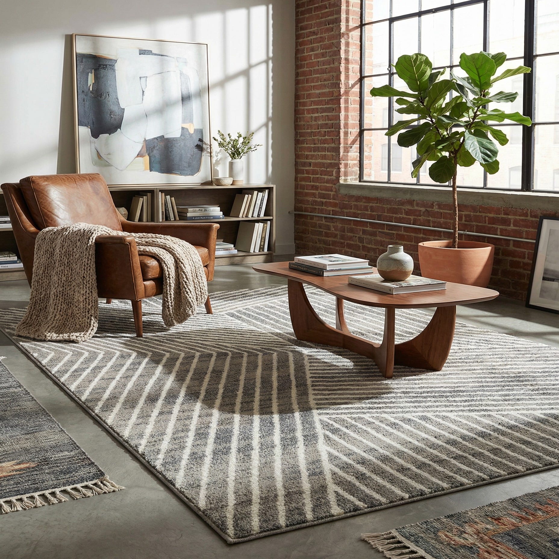 This rug pairs well with contemporary, Scandinavian, or transitional interiors. Use it to anchor a living room seating area, add pattern to a bedroom beneath the bed, or bring interest to an entry or home office. Combine it with warm wood furniture, metal accents, and ivory or charcoal textiles for a balanced, layered scheme that highlights the rug’s linear design.