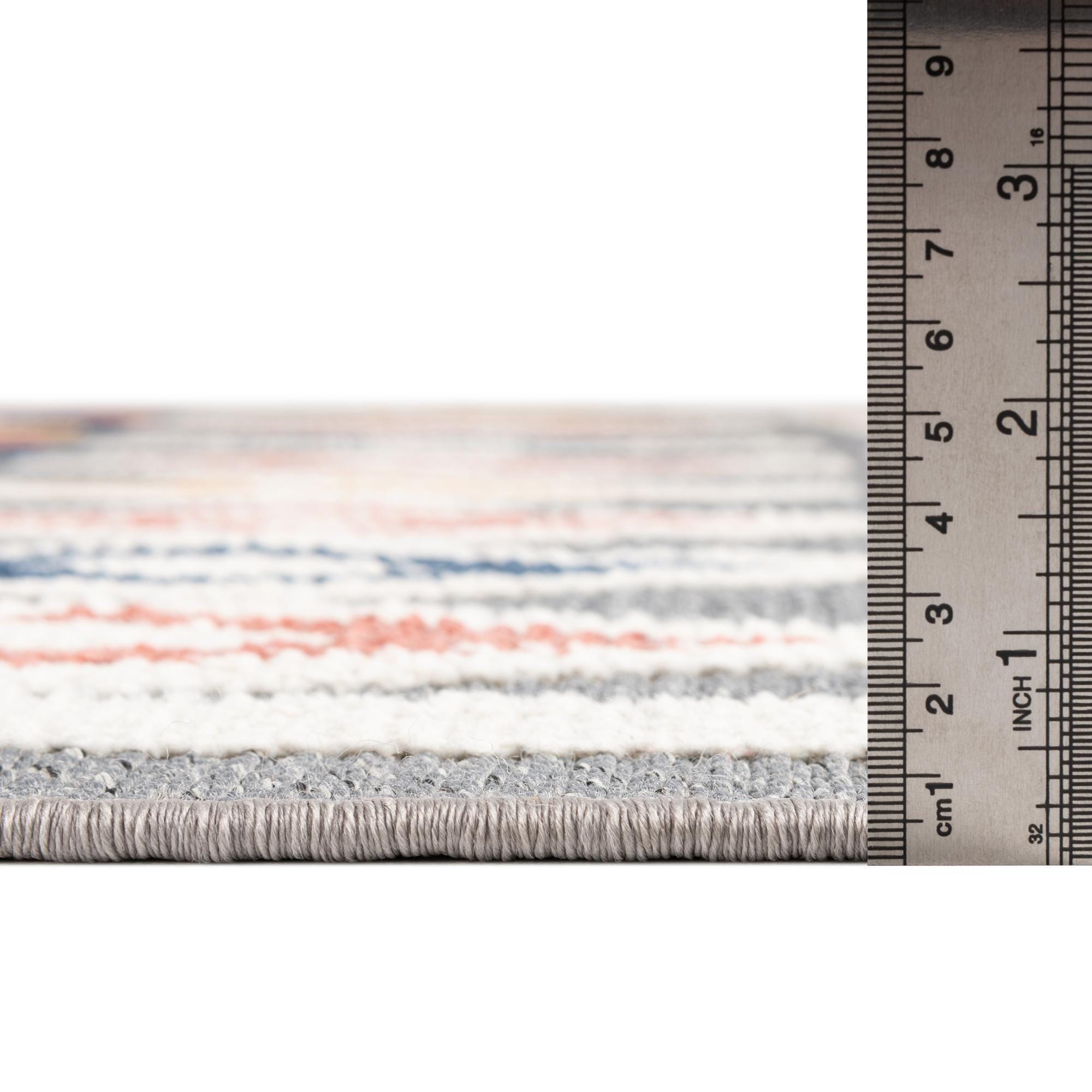 Primary color is Gray. Colors in this rug include: Gray, Ivory, Navy Blue, Yellow, Terracotta.