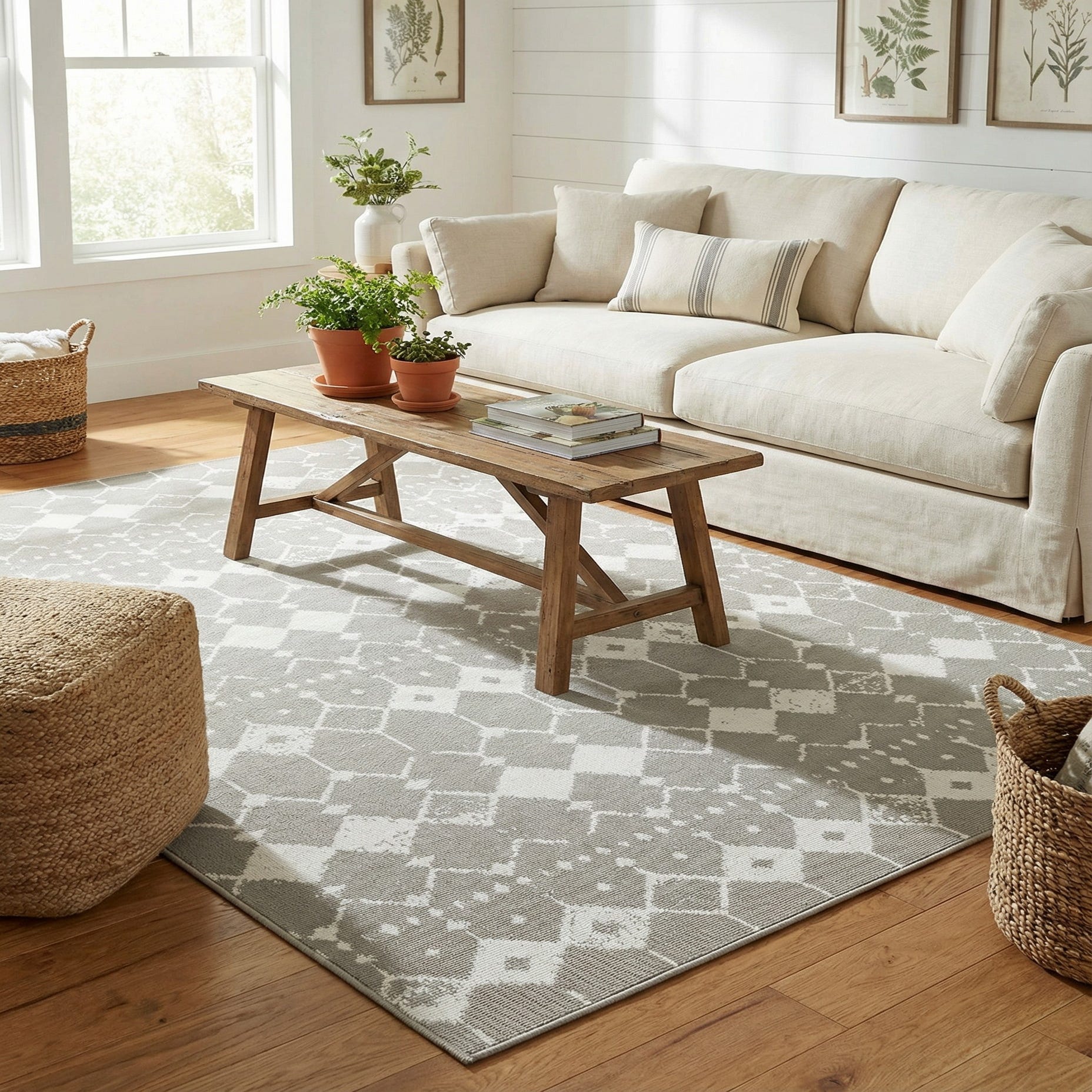 Primary color is Gray. Colors in this rug include: Gray, Ivory.