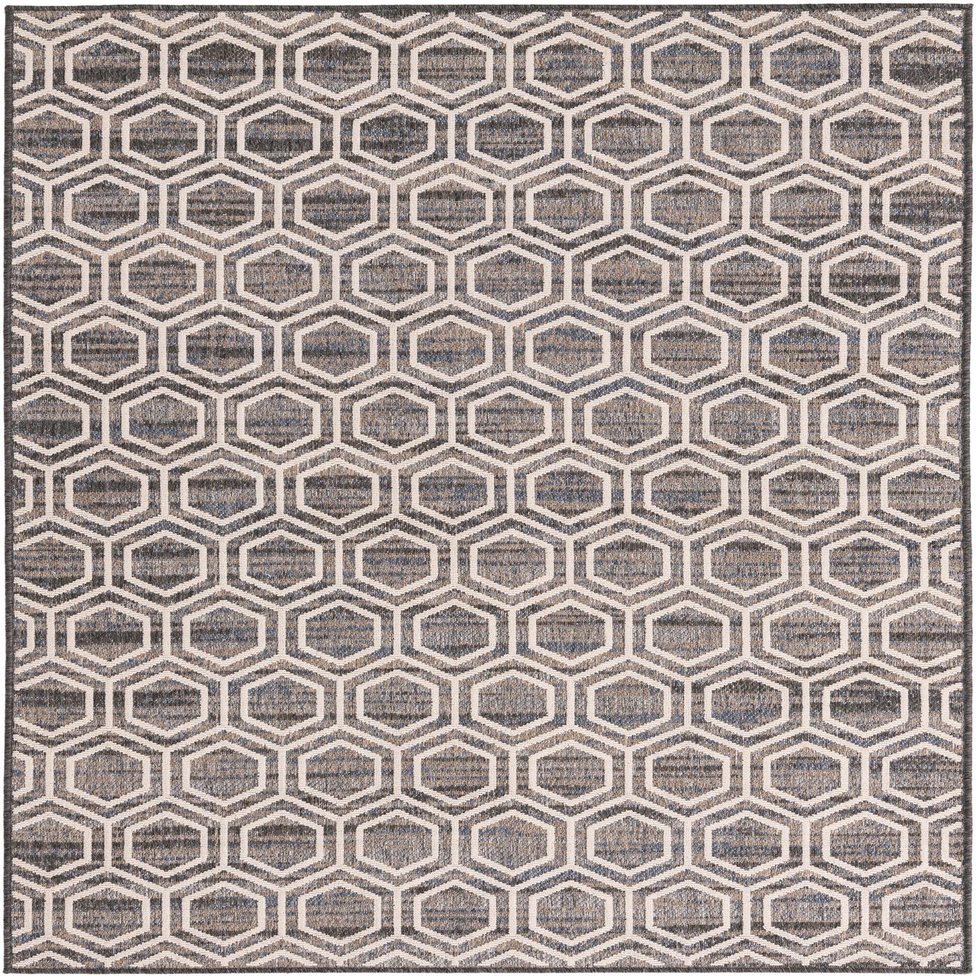 Its eye-catching pattern features a geometric honeycomb-like lattice that interlocks across the surface, creating a contemporary feel with a touch of classic symmetry. The clean lines of the pattern are softened by the neutral tones, making it an adaptable choice for a variety of outdoor settings such as patios, decks, or porches, as well as high-traffic indoor areas like living rooms, kitchens, or entryways.