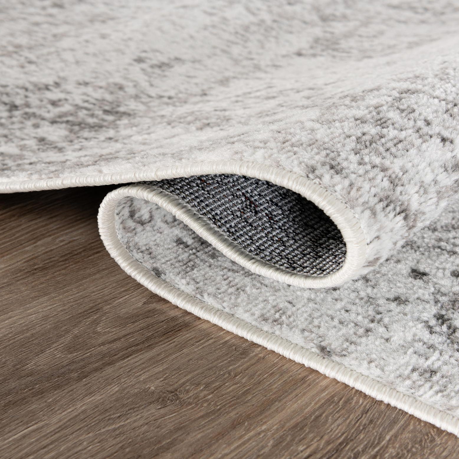The oval silhouette makes this piece ideal for softening rectangular rooms and working around curved furniture; place it beneath a round dining set, in an entry to follow a hallway’s flow, or anchored beneath a coffee table to create a relaxed seating area. Its neutral gray and beige palette pairs naturally with light woods, linen upholstery, and matte metal accents, fitting well with modern farmhouse, transitional, Scandinavian, or contemporary-traditional interiors.