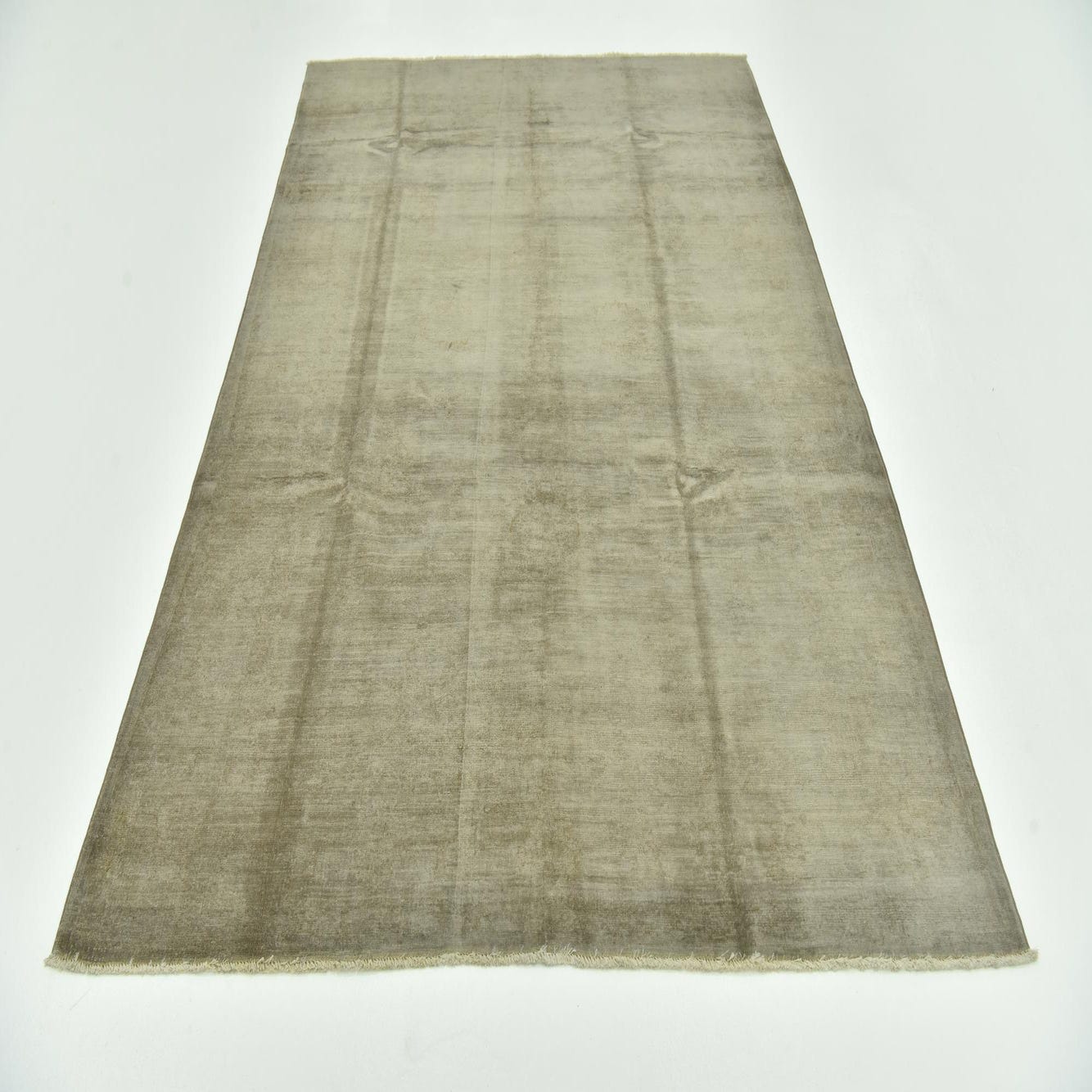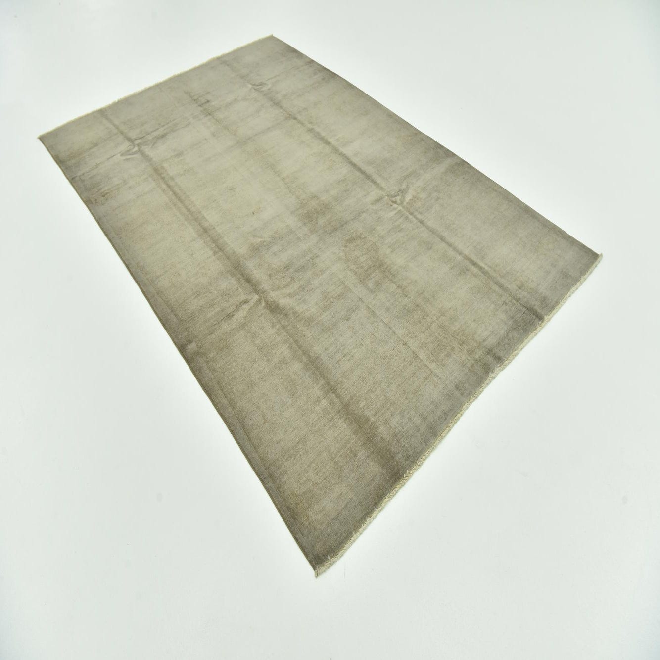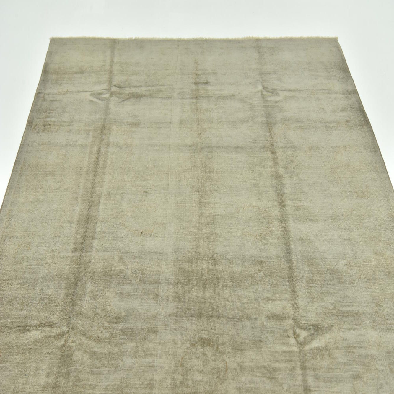 A 5x8 rectangular Over-Dyed Ziegler rug in varying shades of gray, featuring a subtle vintage, solid pattern.