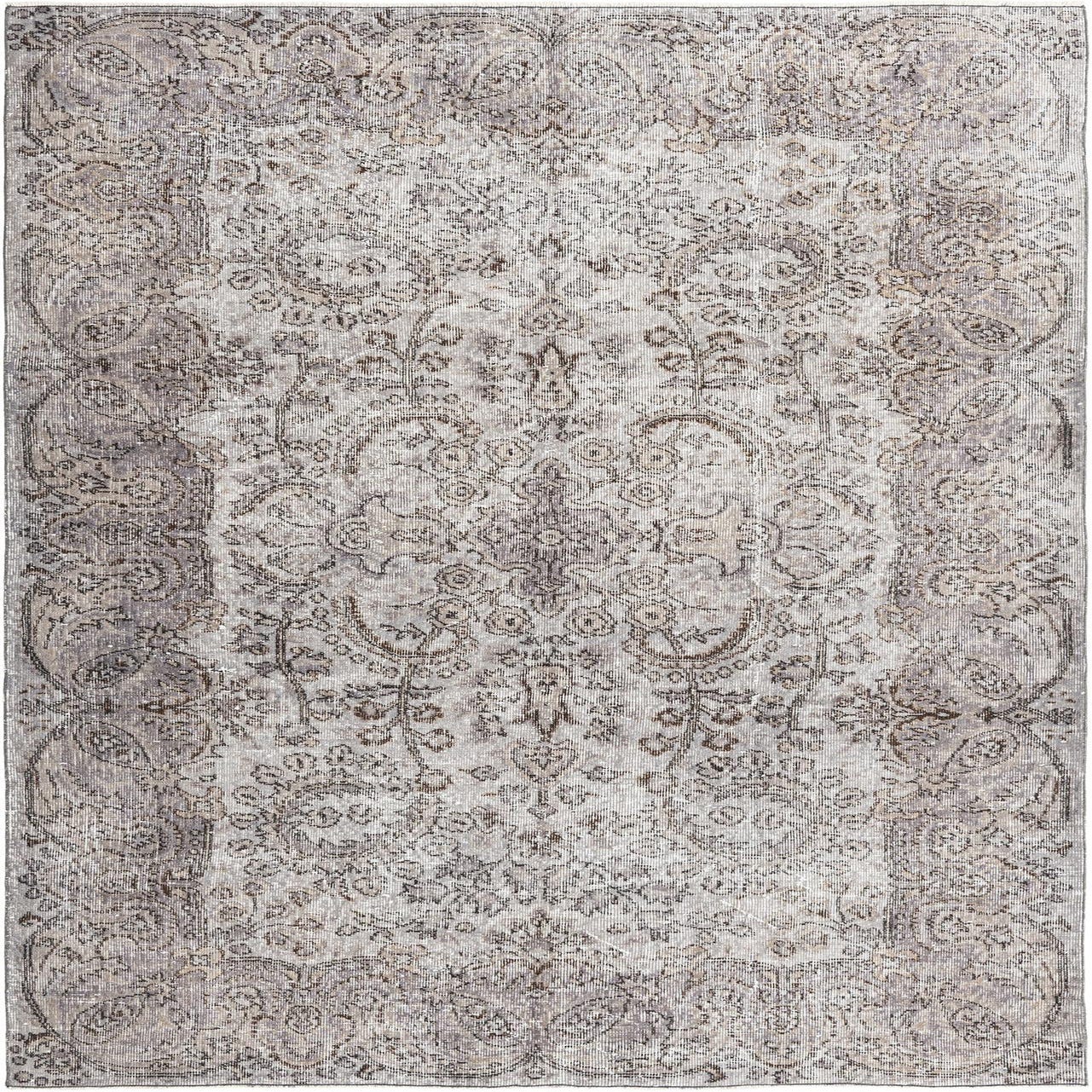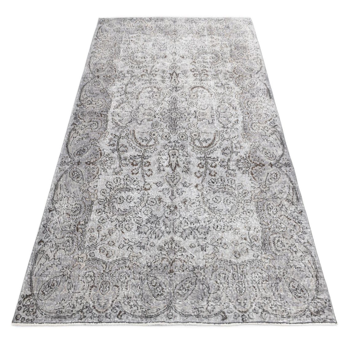 A 5x8 rectangular Ultra Vintage rug in grays and silvers, featuring a faded Persian-inspired pattern.