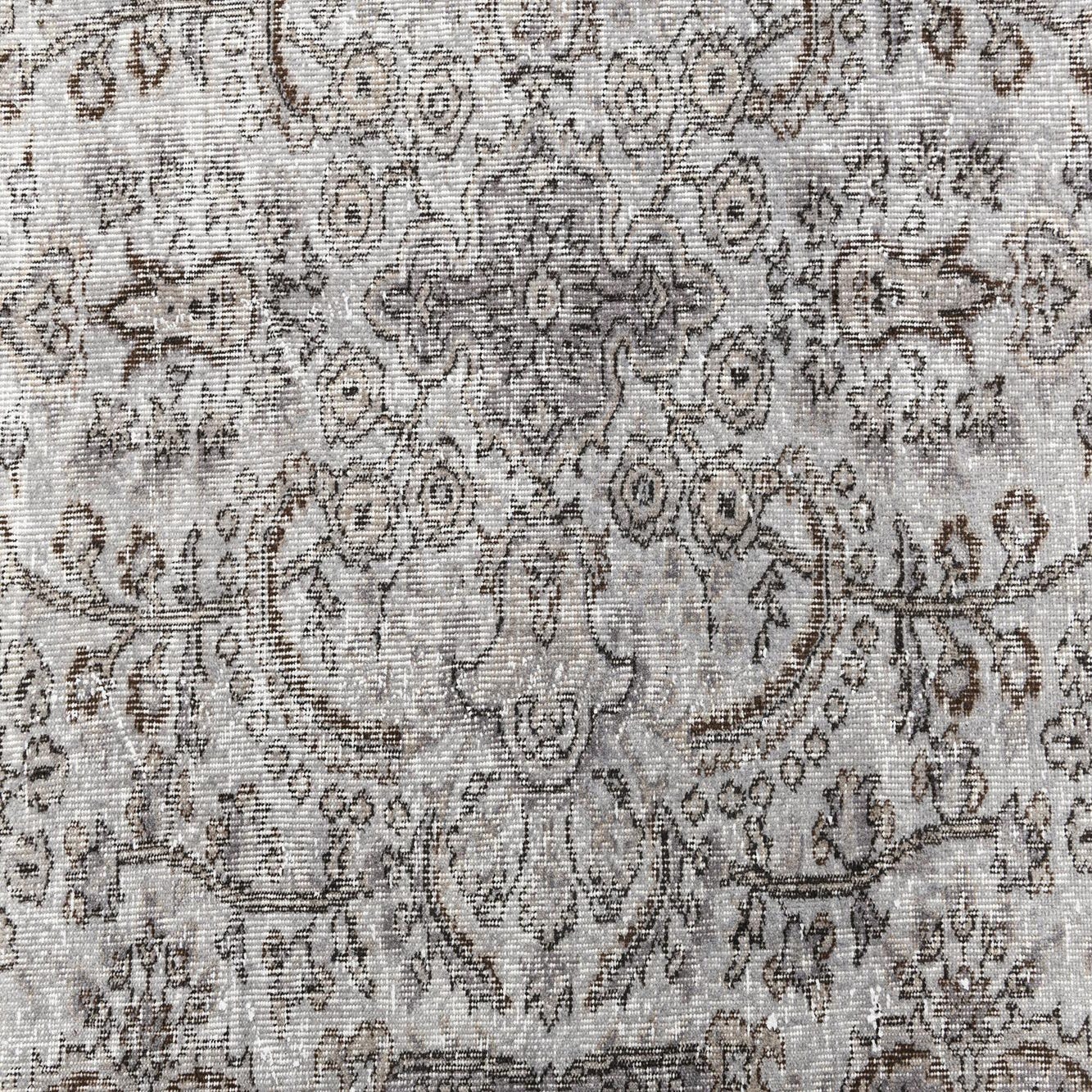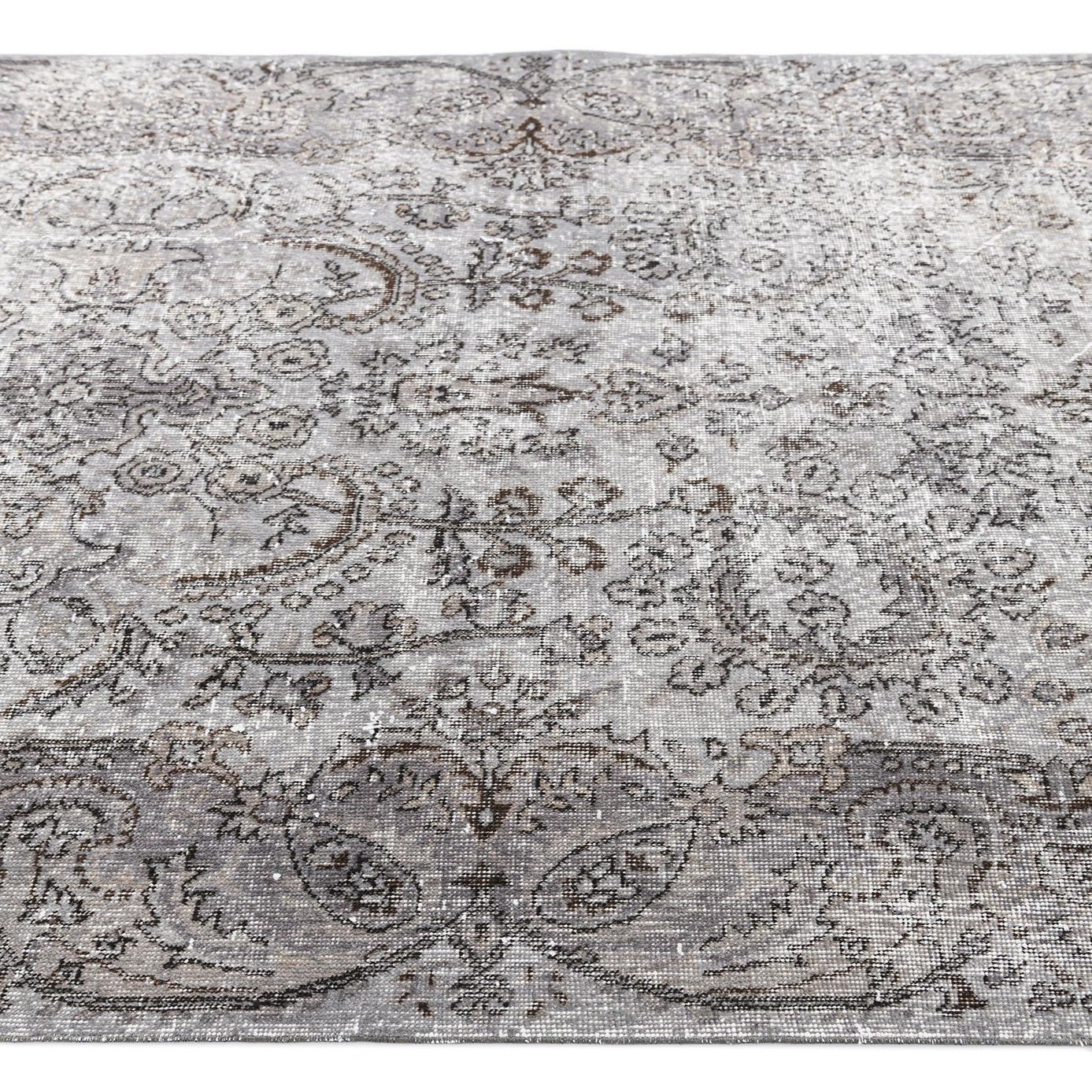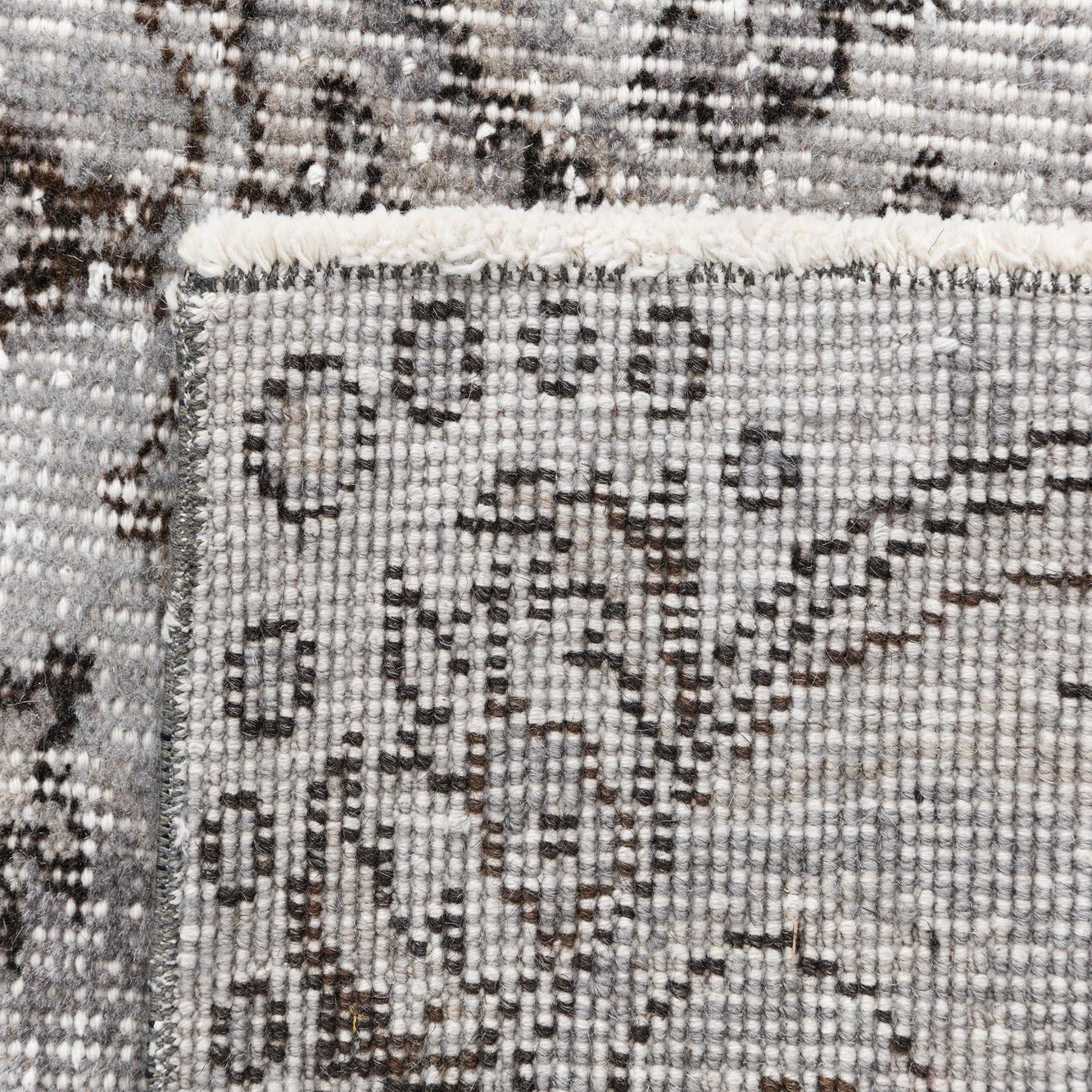 The subtle variation in the background's gray tone provides an elegant base that complements the overall design, making the piece versatile for a variety of interior scenarios. This rug would seamlessly integrate into a modern farmhouse setting, bringing a touch of vintage charm, or could serve as a grounding element in an industrial loft, where its muted colors and detailed pattern would add warmth and complexity. Additionally, the rug could enrich a transitional space, bridging traditional and contemporary elements within the home's decor.