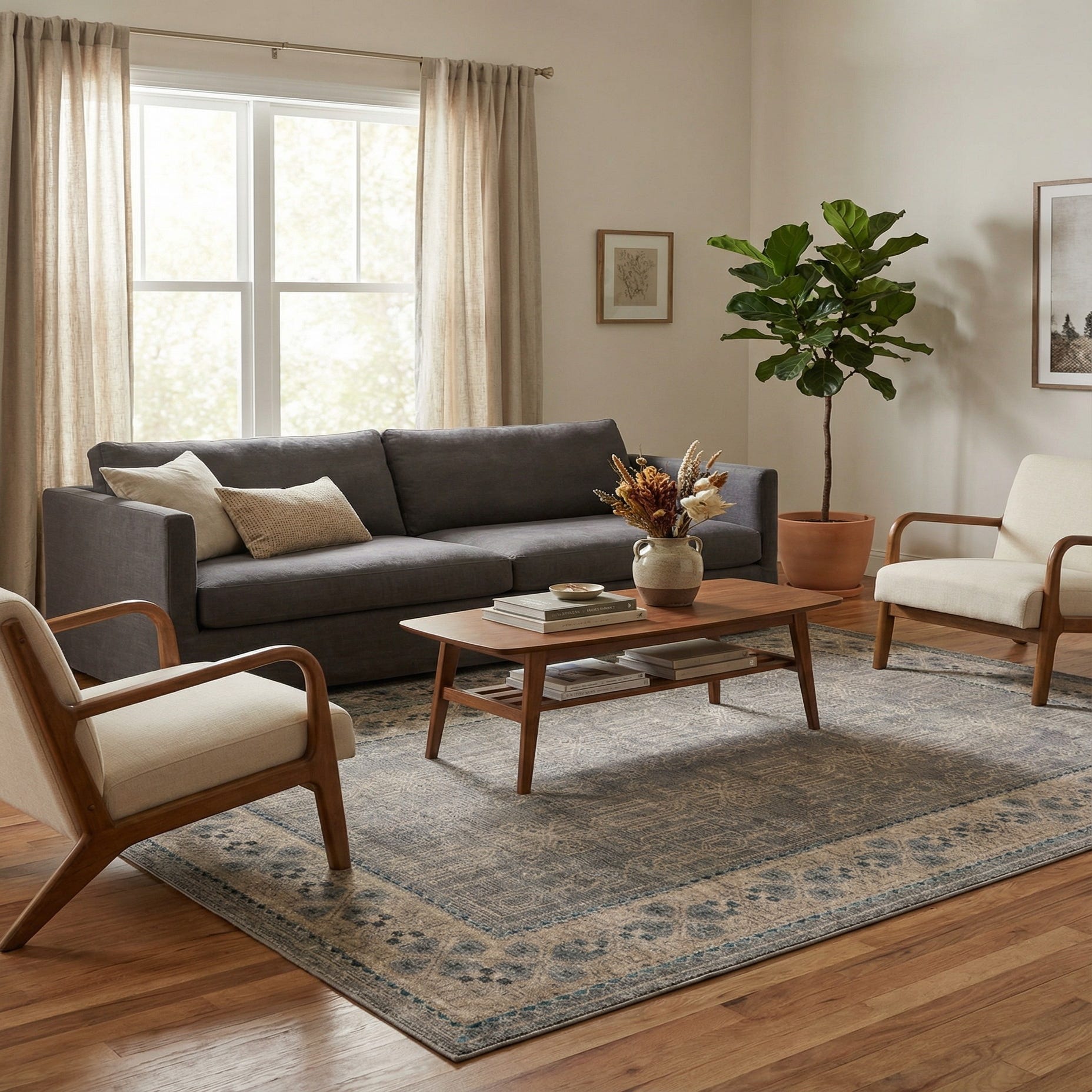 This colorway and pattern work well in transitional, coastal, or modern-traditional interiors. Pair it under a sofa and coffee table to ground a living area, layer it beneath a bed to add a soft visual anchor in the bedroom, or place it in an entry or home office to introduce calm, neutral tones. The construction and finish allow the rug to maintain pattern clarity and color depth in everyday living spaces.