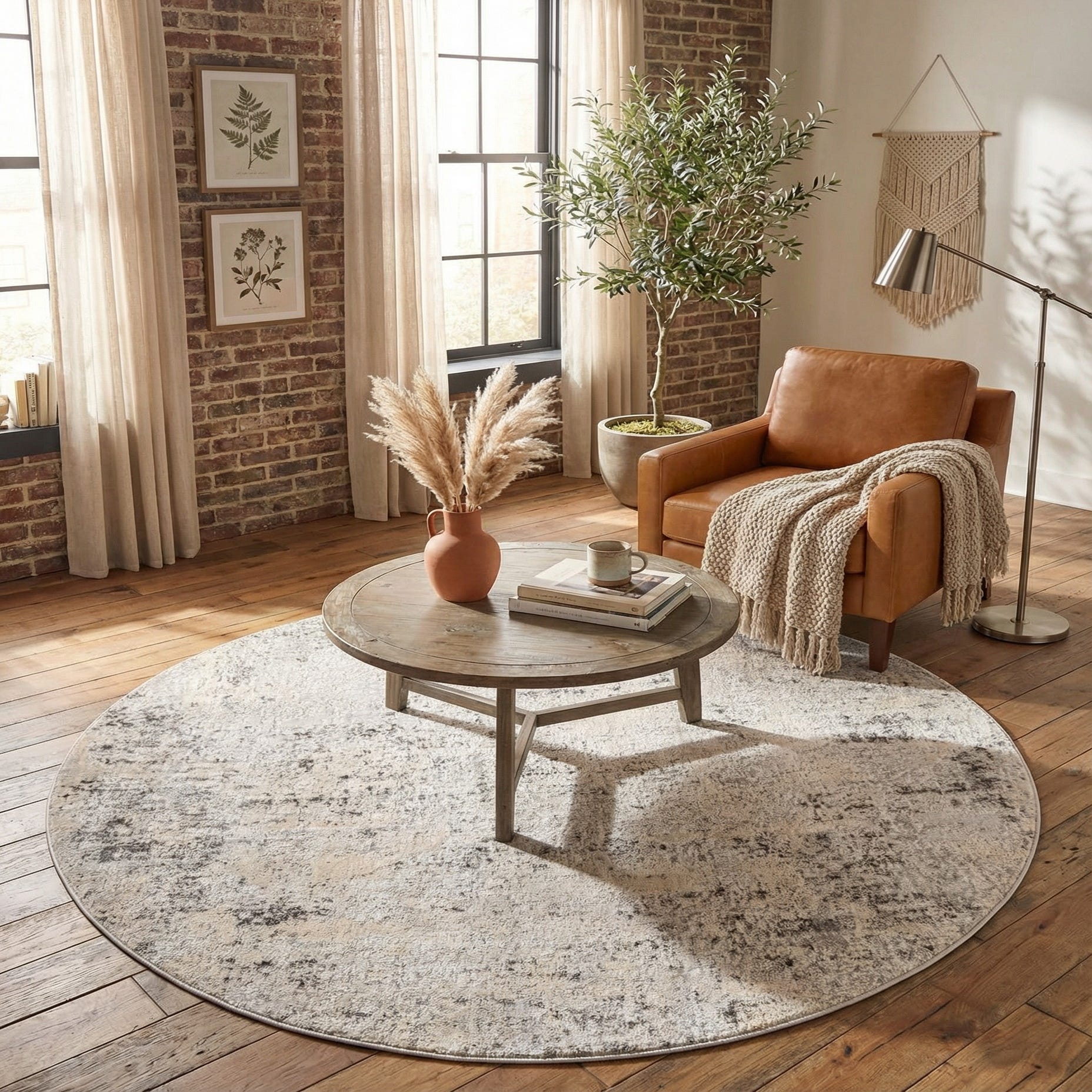 Run your hand across the surface and you’ll notice a brushed, slightly plush texture that maintains a tailored appearance. This round shape works well anchored beneath a round dining table, centered in a seating area, or tucked into a reading nook to add softness to hardwood or tile floors. Pair it with cool-toned upholstery, light wood finishes, and metal accents for a calm, cohesive space.