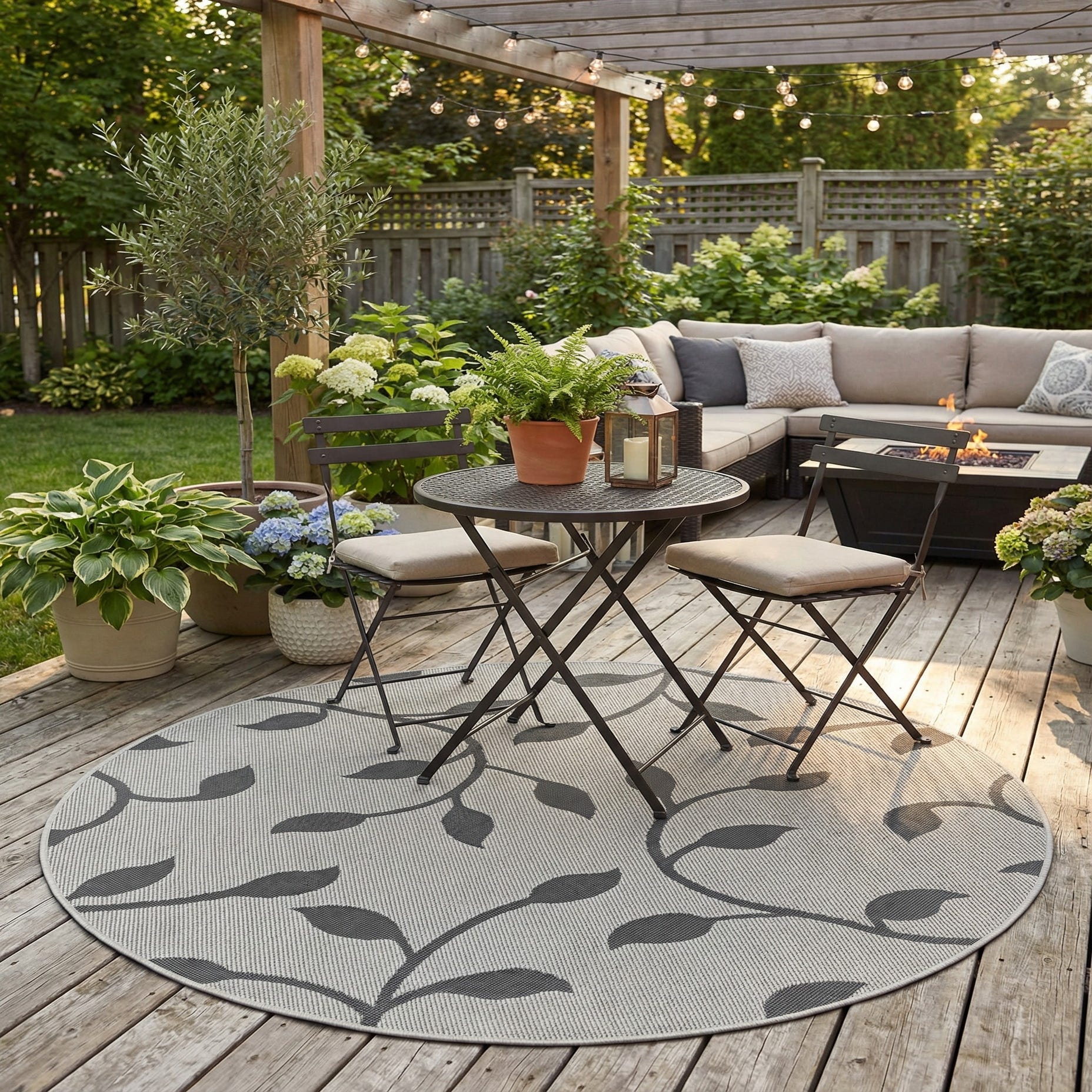 6' x 6' Washable Botanical Indoor / Outdoor Round Rug