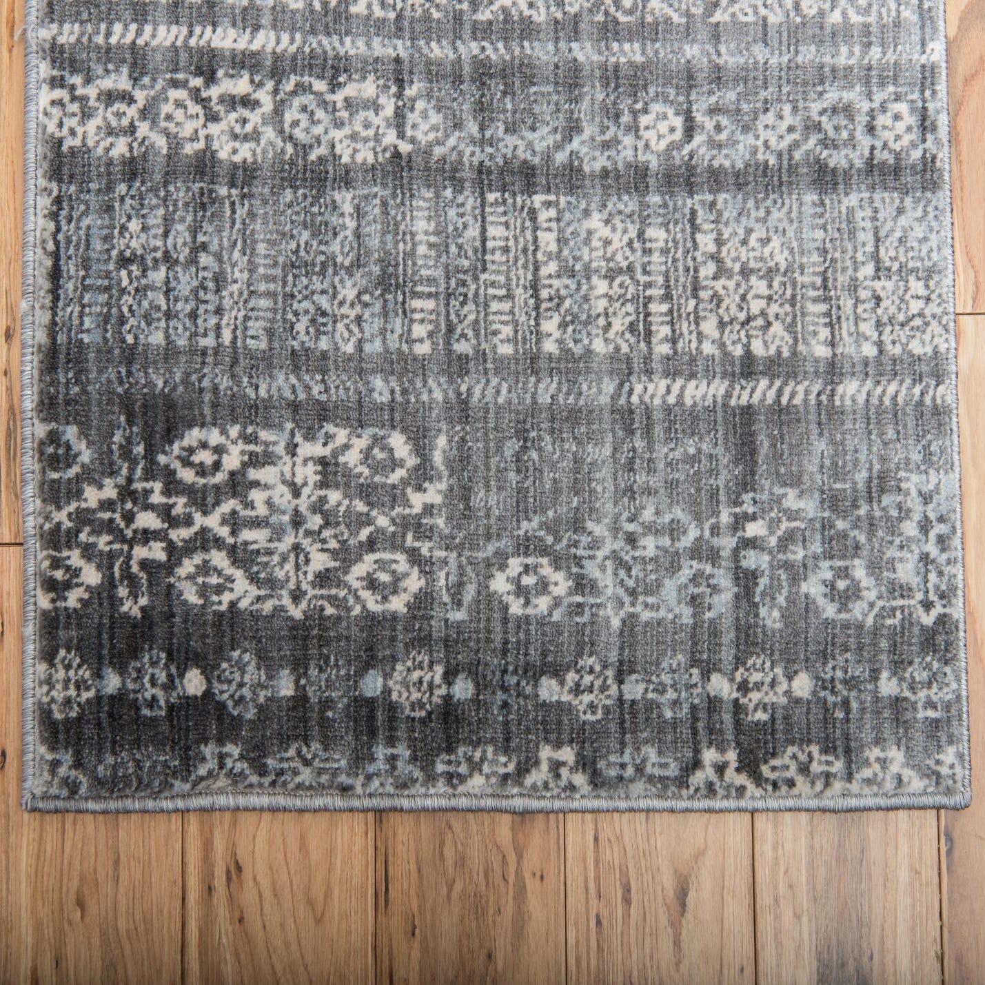 Primary color is Gray. Colors in this rug include: Gray, Beige, Light Blue.