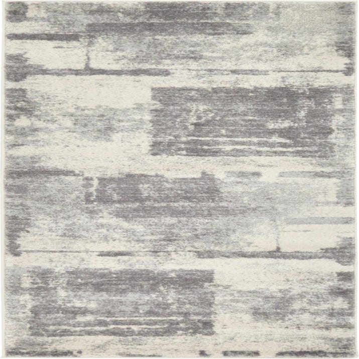 Primary color is Gray. Colors in this rug include: Gray, Ivory, Silver.