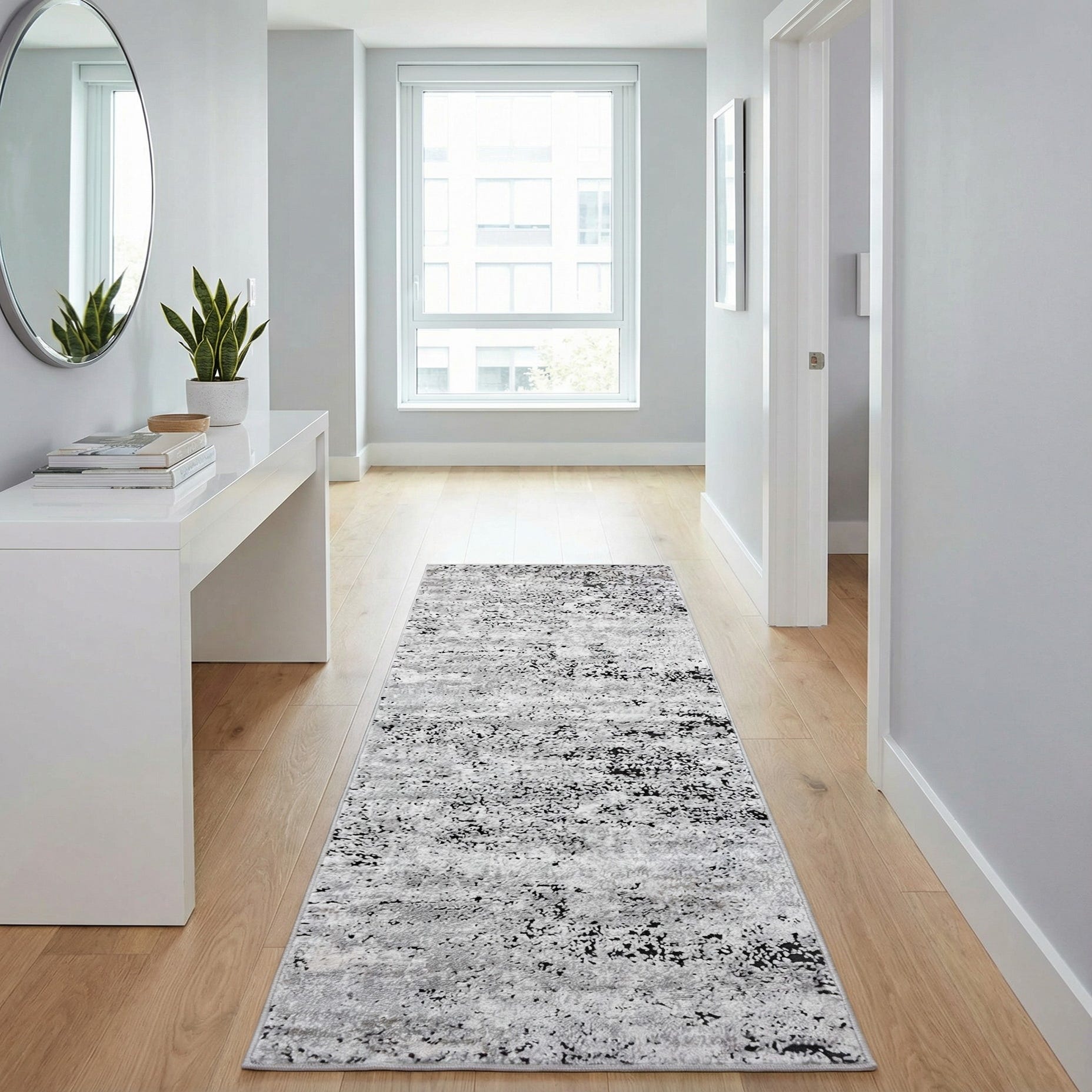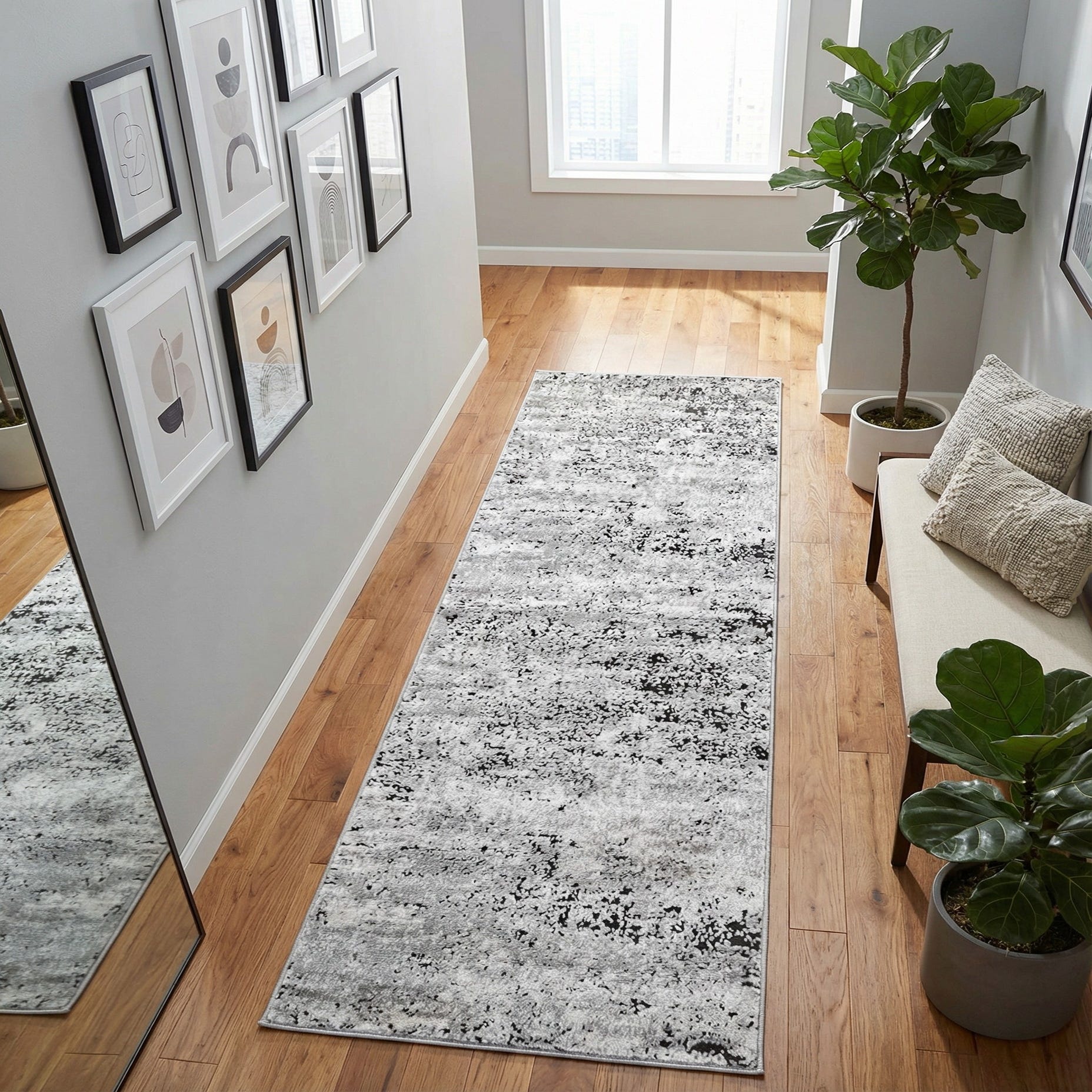 Use this runner to anchor narrow spaces like hallways, entryways, or alongside a kitchen island, or layer it in front of a sofa to add visual interest without overpowering existing décor. It works well with modern and transitional interiors, Scandinavian schemes that favor muted palettes, or industrial lofts where the brown flecks complement metal and reclaimed wood finishes. Pair with neutral upholstery, warm wood floors, or cool concrete surfaces to balance texture and tone across the room.