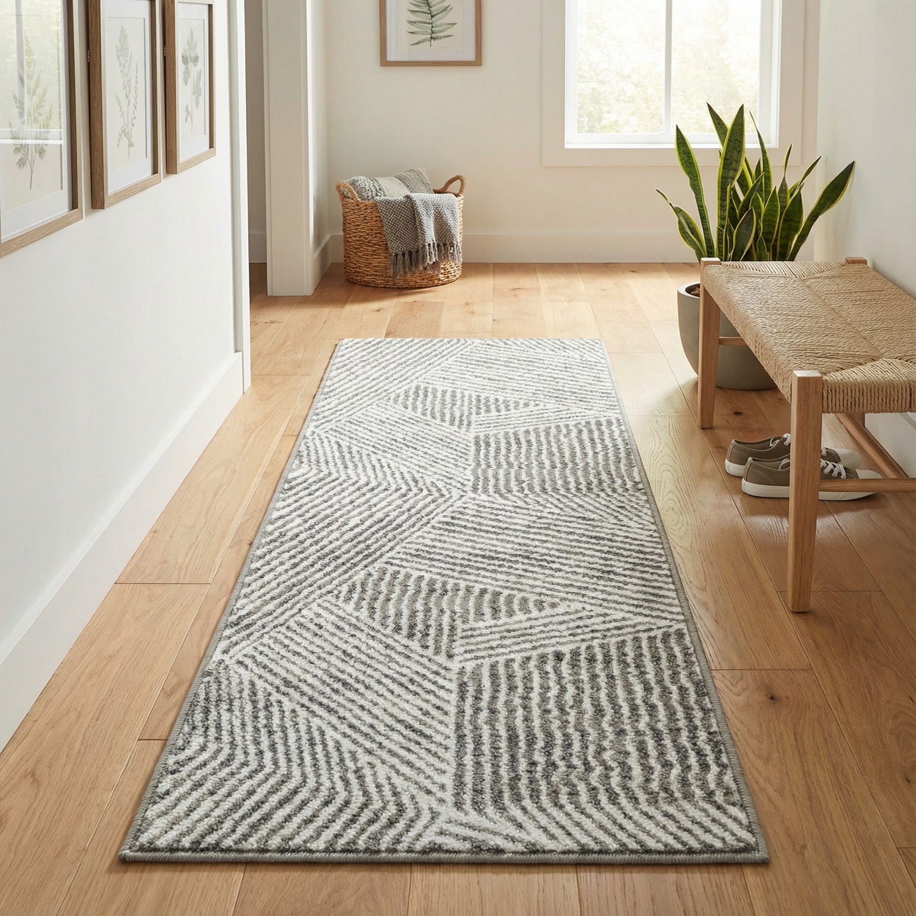 Machine-made from 100% polypropylene, this runner offers consistent construction and reliable color clarity for everyday use. Its clean-lined pattern pairs naturally with minimalist and transitional interiors—place it in a hallway or entry to guide traffic, alongside a bed to add warmth and pattern, or in a galley kitchen to introduce subtle texture. It also complements muted palettes and cool-toned furnishings, working well with gray, ivory, or wood accents for a calm, contemporary look.