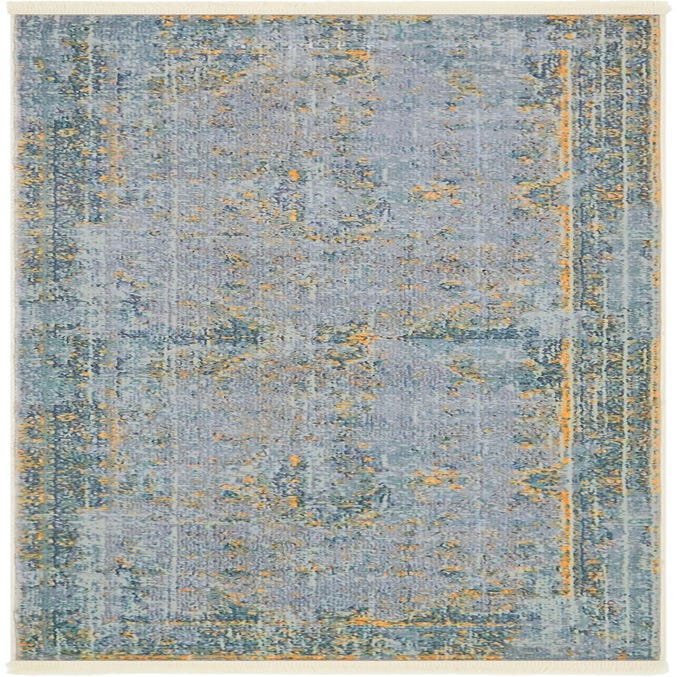 Machine-made from 100% polypropylene, the pile is low and smooth to the touch, offering a low-profile, slightly velvety hand underfoot. Its color palette and worn aesthetic work well in hallways, entryways, or alongside a kitchen runner; pair it with light- to medium-toned woods, brass or matte-black metal accents, and teal or navy textiles for a cohesive scheme. The combination of cool neutrals and warm yellow highlights suits contemporary, transitional, and coastal interiors that benefit from a restrained, lived-in layer.