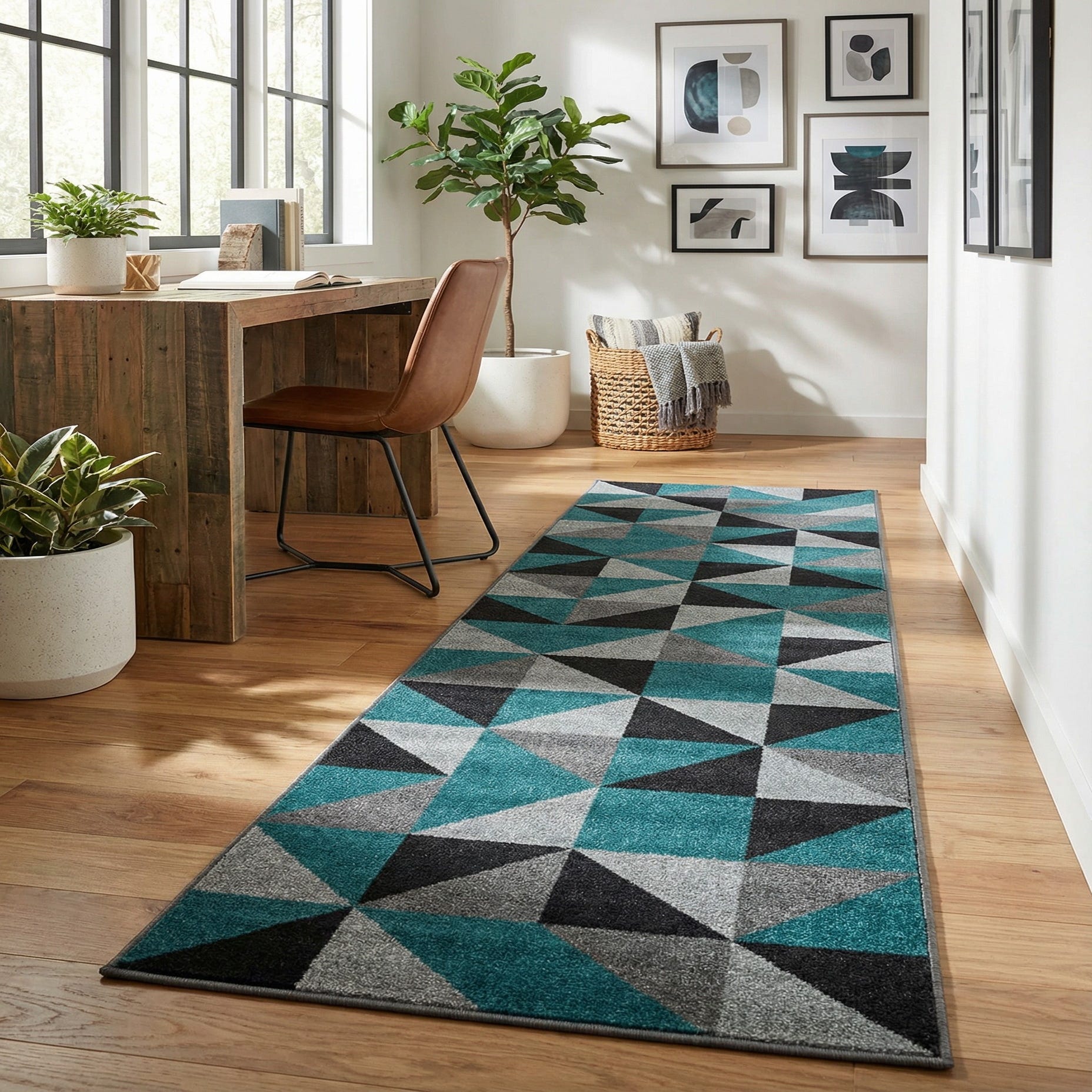 Primary color is Gray. Colors in this rug include: Gray, Black, Blue, Ivory.