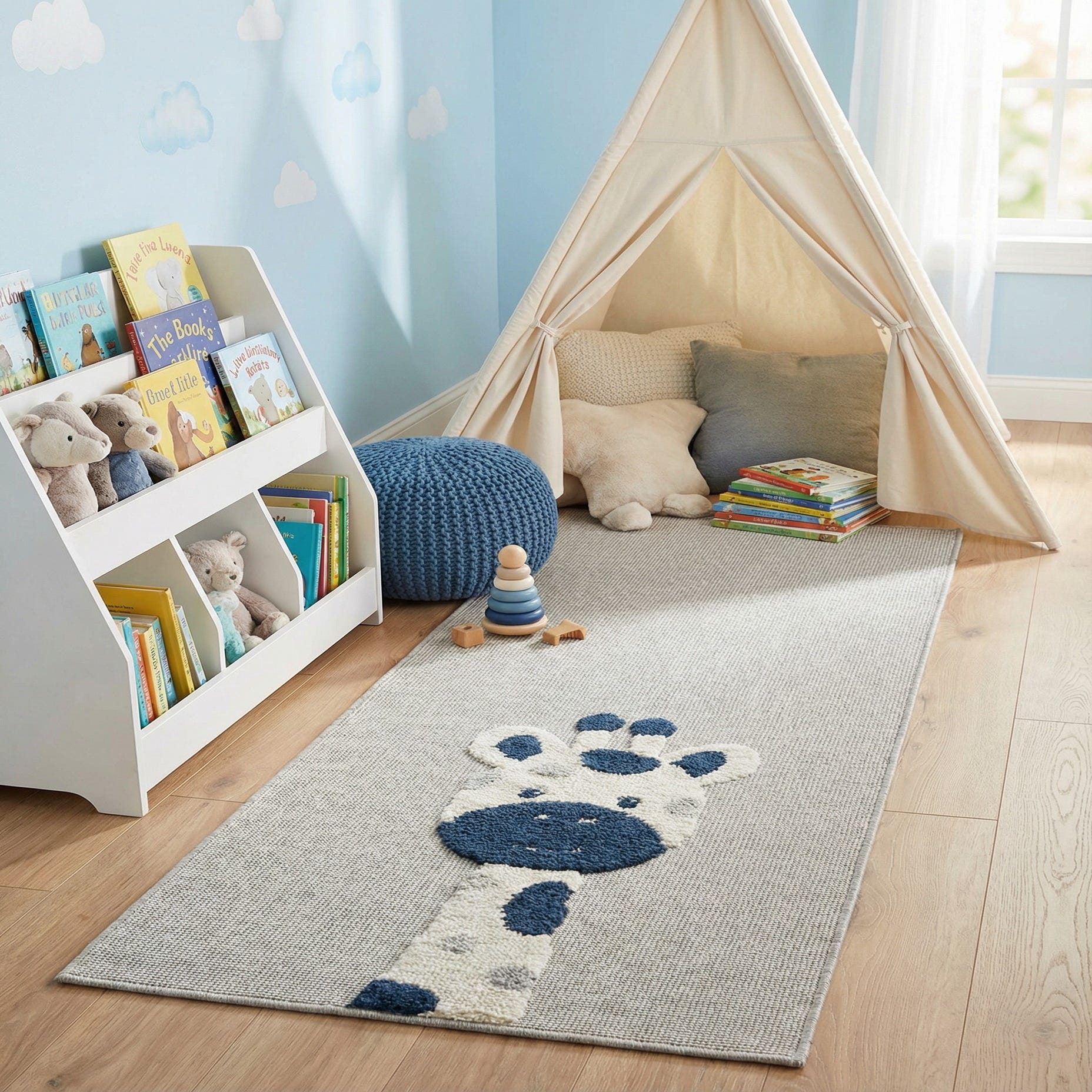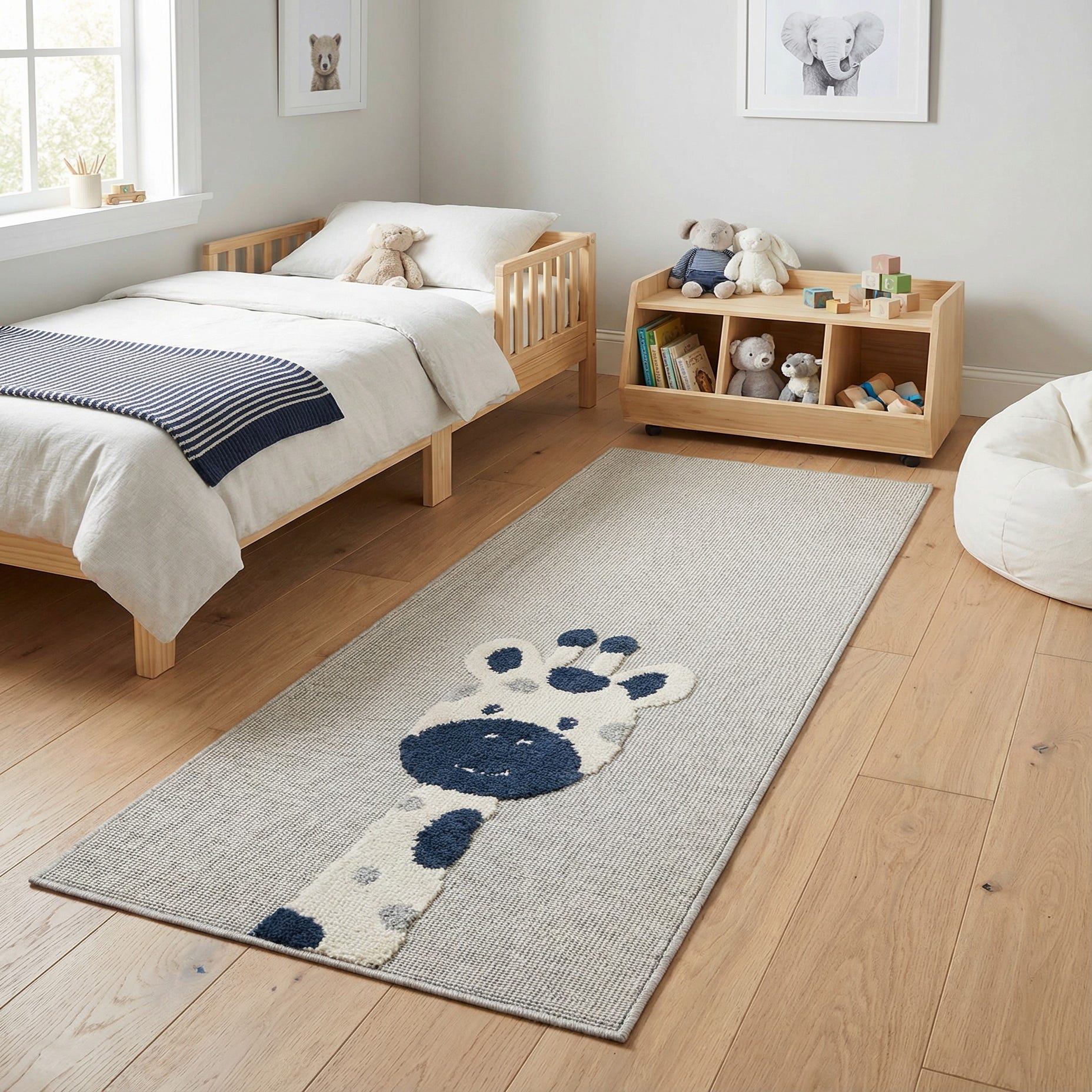 Primary color is Gray. Colors in this rug include: Gray, Ivory, Navy Blue.