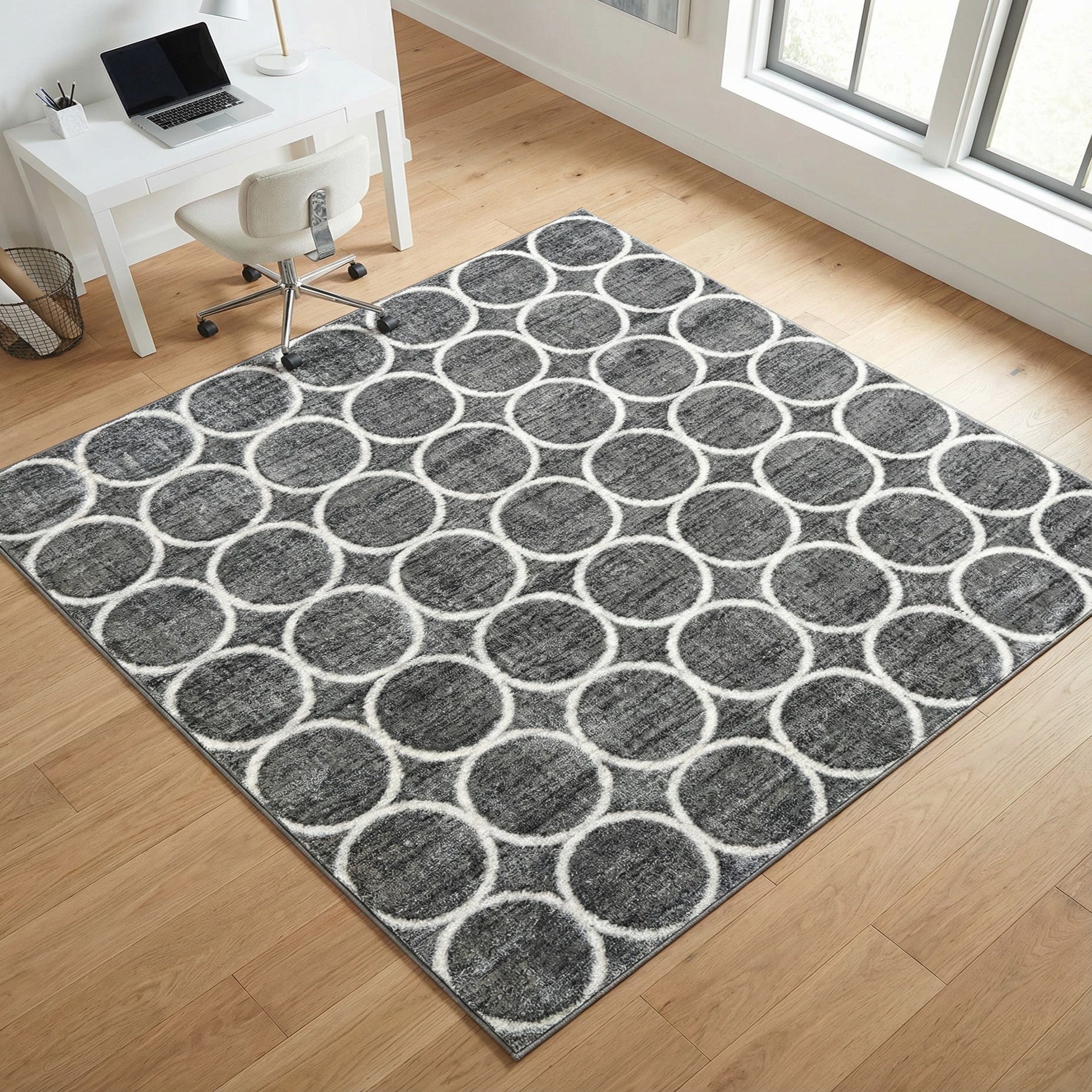 This rug's structured yet airy design lends itself to various decor scenarios. It would serve as a sophisticated anchor in a contemporary living room, add a touch of elegance to a minimalist dining area, or complement the sleek lines of a modern home office. The 6 Ft Square dimension is particularly well-suited for defining seating areas or filling out small to medium-sized spaces with a balanced look.