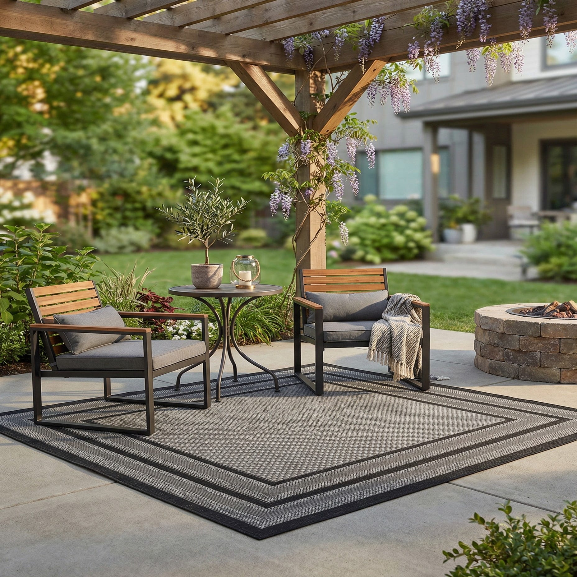 6' x 6' Washable Border Indoor / Outdoor Square Rug