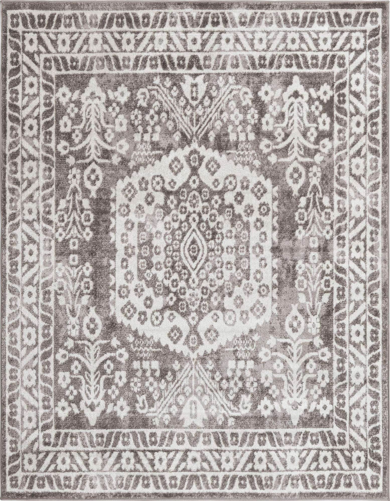 I bought this rug for the living room to add warmth to my grey floors and sofas. The grey detail on the ivory background tied everything in perfectly! The material is soft with a low pile so it is easy to vacuum! I would highly recommend!