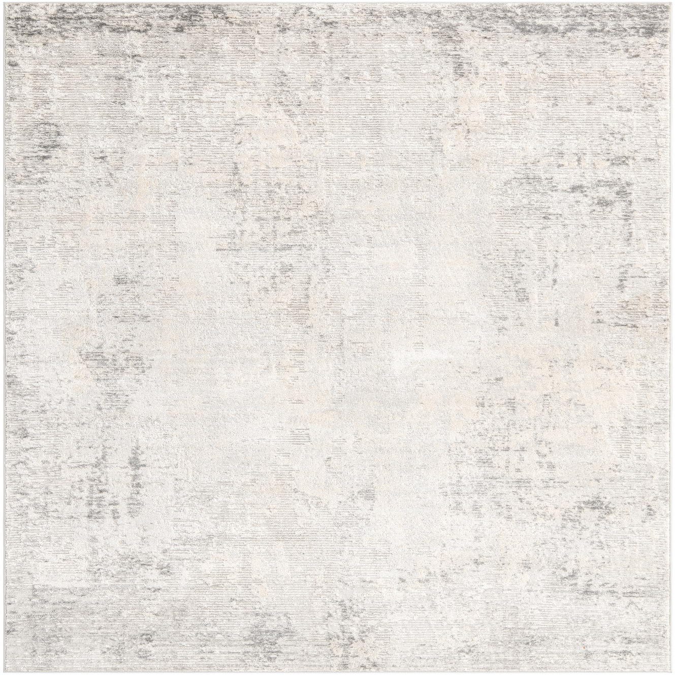 A softly distressed, low-contrast pattern gives this rug a lived-in, modern-vintage look. The gray background provides a cool, even field while ivory highlights and faint linear striations create a subtle textured effect across the surface. The abstract, slightly weathered motif and muted palette make the design easy to layer with both solid and patterned furnishings.