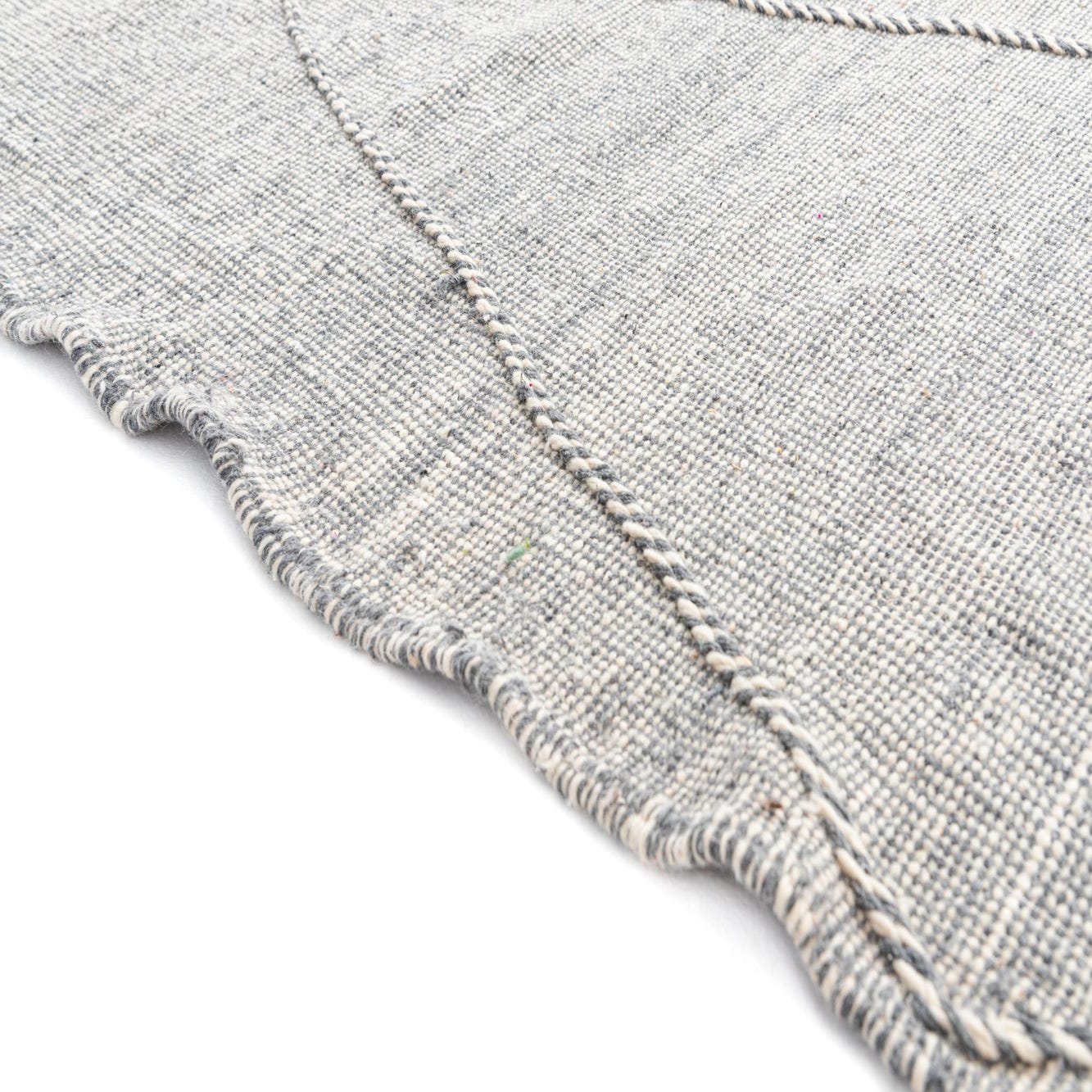 Ideal for anchoring furniture in living spaces, this rug can also serve as a focal point in bedrooms or dining areas. Its woolen construction provides a warm, natural feel that complements hardwood floors and helps to define seating areas, while its restrained color scheme allows it to blend seamlessly with a range of color palettes.