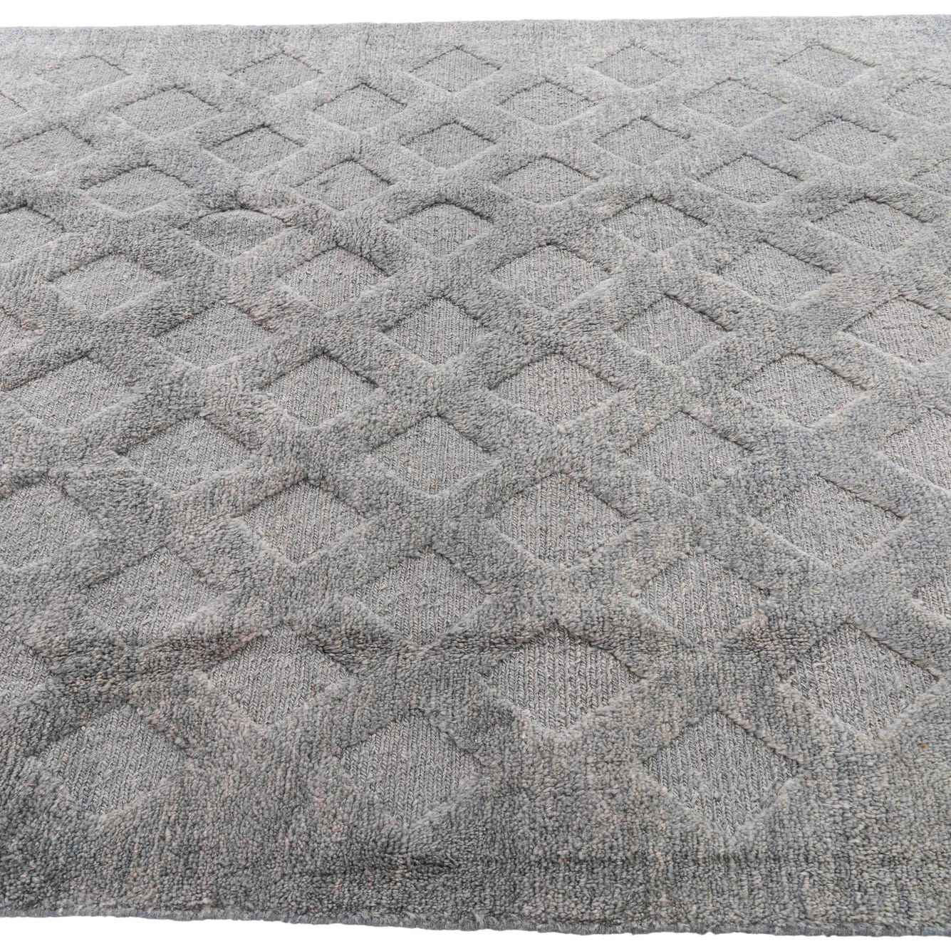 A 6x9 rectangular gray wool shag rug with a subtle tribal diamond pattern, ideal for a living room.