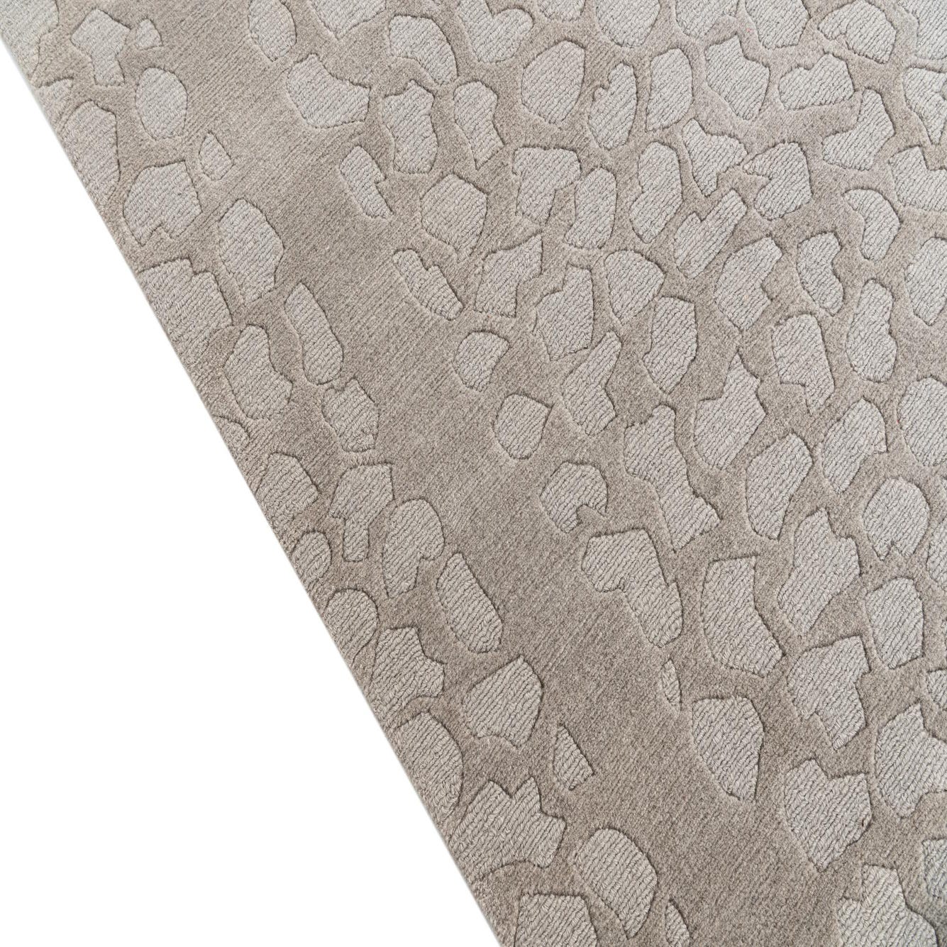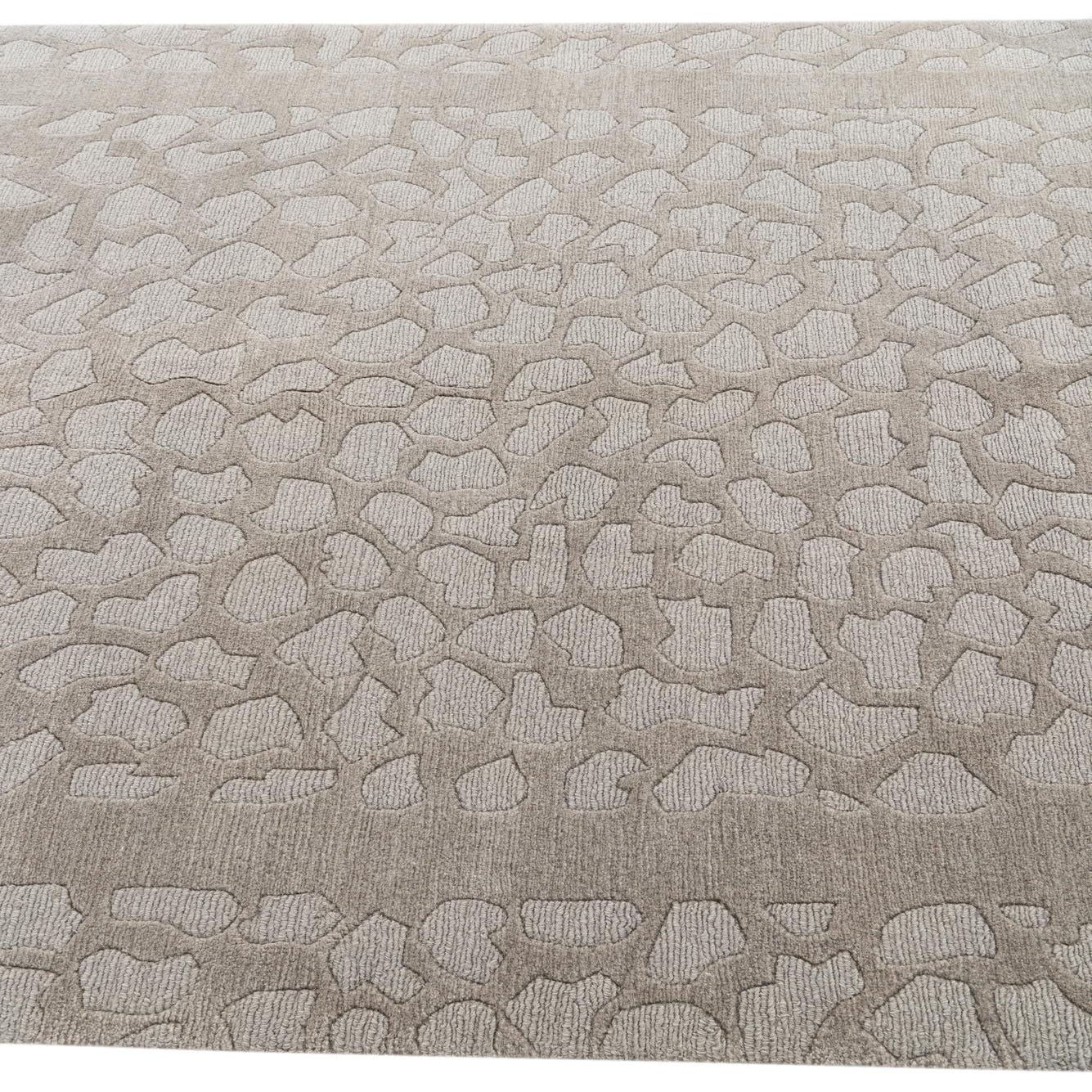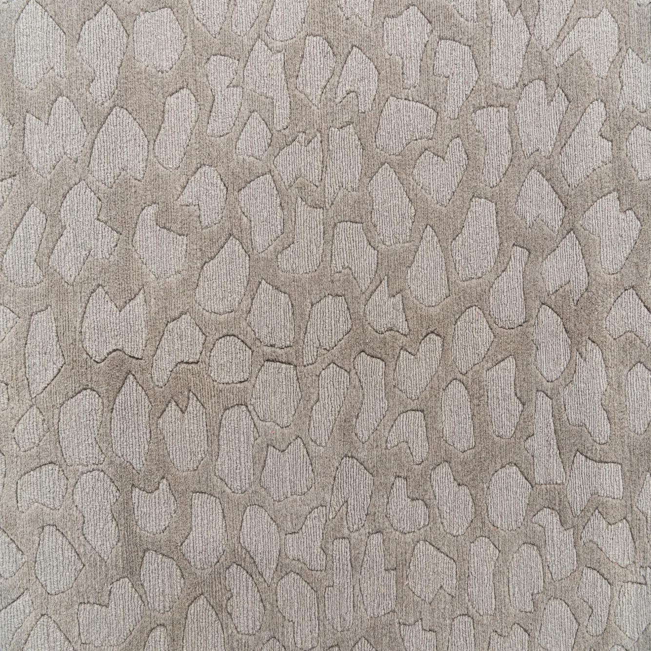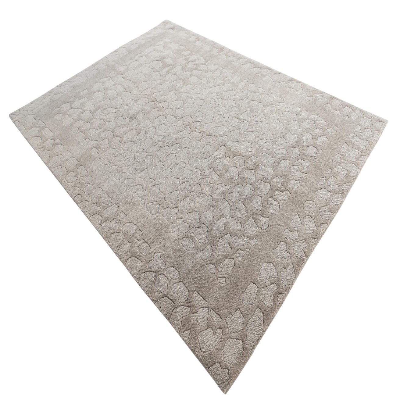 A 6x9 rectangular gray modern wool area rug with an abstract pattern and a subtle border, ideal for a living room.