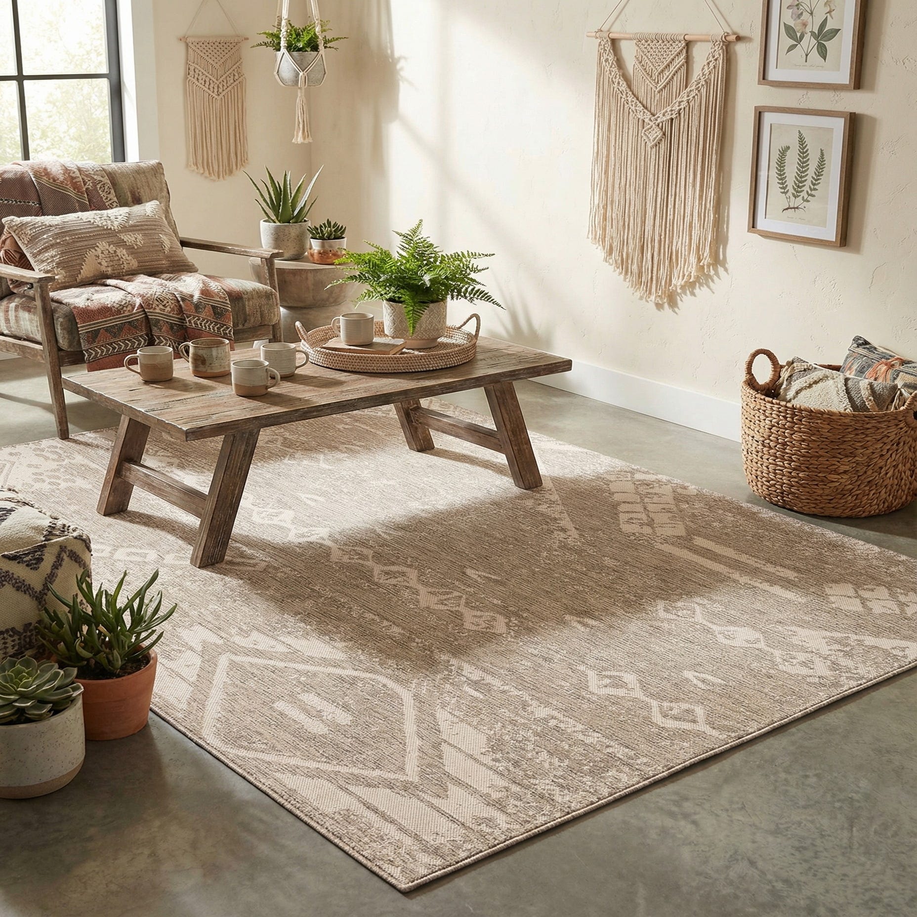 6' x 9' Washable Bohemian Indoor / Outdoor Rug