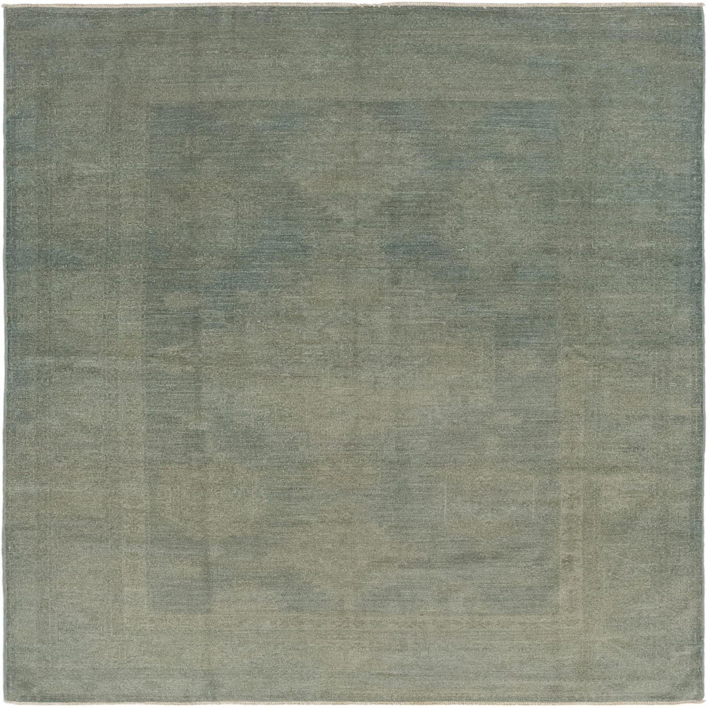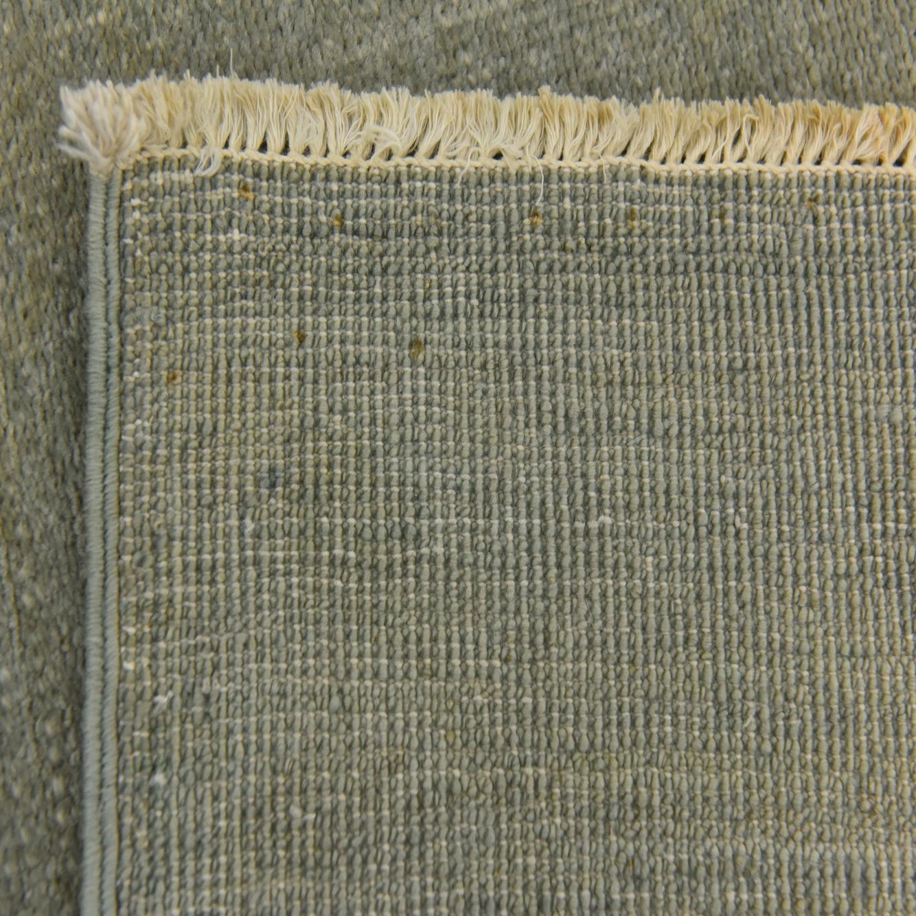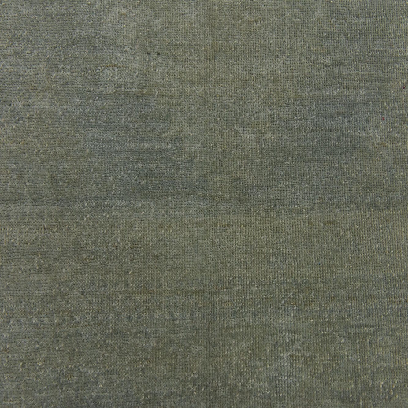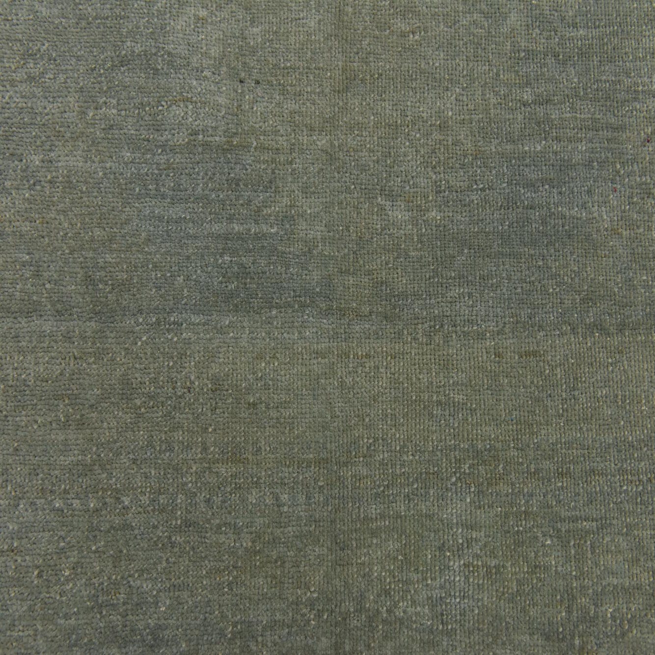 This Over-Dyed Ziegler rug is hand-knotted of 100% hand-spun wool, emphasizing durability and a soft texture underfoot. Sized at 6x9, it is a versatile piece for a variety of room settings. The rug features a gray background, imbued with subtle overlays of olive tones that create a muted, harmonious appearance. The patterning is understated, consisting of gentle variances in color that suggest a traditional motif that has been softly faded over time, adhering to a contemporary over-dyed style.