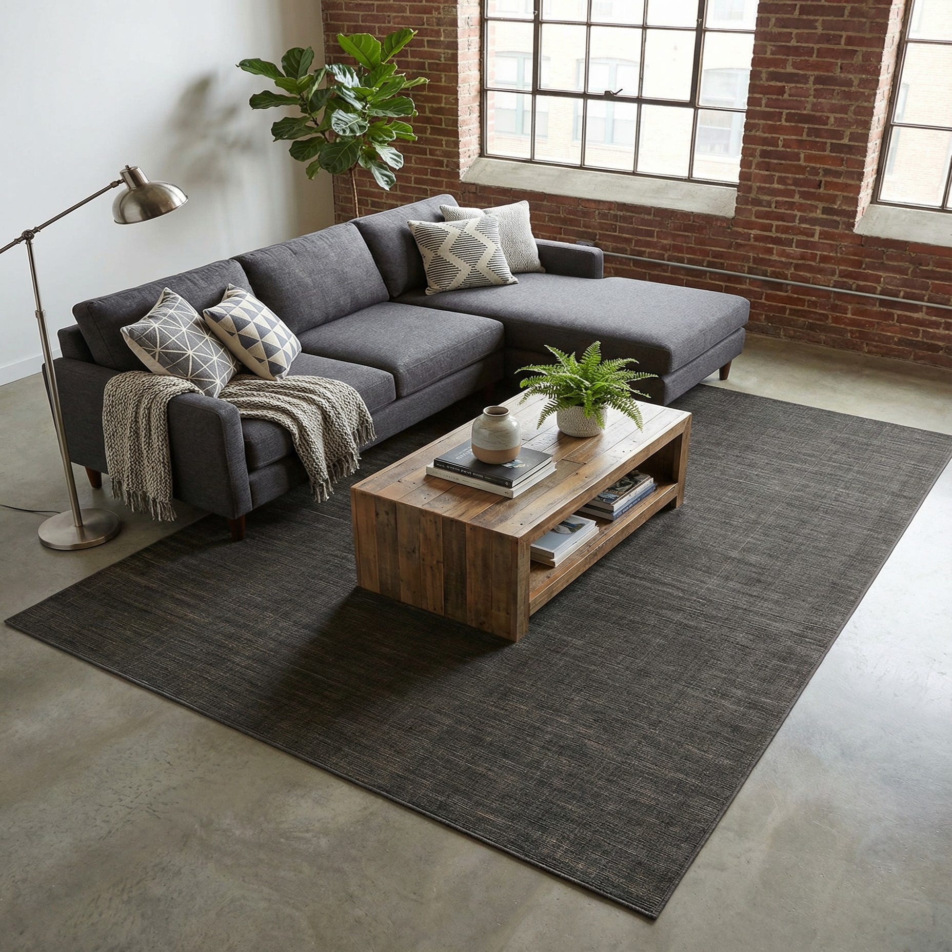 Machine-made from 100% polypropylene, the low-profile construction feels smooth and slightly firm underfoot, making it easy to layer or place alone as an anchor. Its straightforward palette and texture work well in a modern living room beneath a sofa and coffee table, under a dining set, or in a home office to unify the space. Pair it with warm wood tones and leather for an industrial or mid-century look, or layer with patterned accents and soft textiles in a Scandinavian or minimalist interior for a calm, pulled-together result.