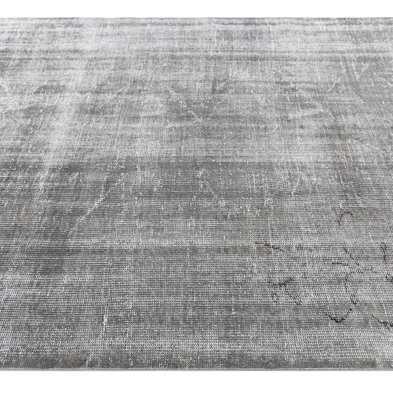 A 6x9 rectangular Rugs.com Ultra Vintage rug in shades of gray and silver with a distressed modern Persian pattern, suitable for a living room.
